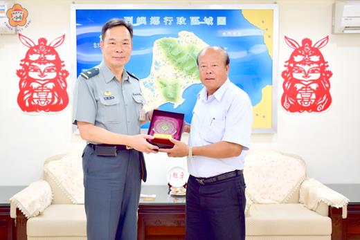 國防大學陸軍學院院長張景陽昨日下午專程「過海」烈嶼鄉拜訪洪成發鄉長,感謝洪鄉長在他擔任烈嶼守備區指揮官職務期間的支持和協助防務。 洪成發歡迎張景陽經常回到烈嶼敘舊,並提供鄉務意見,作為鄉公所和縣政府施政的參酌。 張景陽在擔任烈嶼守備區指揮官期間,和地方互動良好,對於小金門有一份特殊的感情。張景陽和洪成發暢談在烈嶼軍旅生活難以磨滅的記憶,他也特別感謝洪鄉長對於防務工作提供很多協助和幫忙,並經常帶領各界到駐地勞軍,關懷官兵弟兄,展現軍民一家的情誼。 張景陽說,這幾年來,在洪成發鄉長戮力鄉政,島上基礎建設做的很好,綠化的環境很漂亮,唯一不變的是島上鄉民濃濃的人情味,烈嶼鄉是他的第二個家鄉,也結識洪鄉長這一位好朋友。 洪成發也設宴宴請老朋友,歡迎他經常回烈嶼鄉走一走、看一看,和老朋友敘舊,並提供鄉務發展的寶貴意見。
