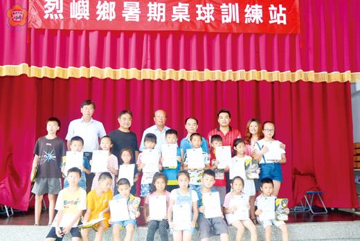 烈嶼鄉公所長期協助學校推動桌球運動,並於每年利用暑假辦理「暑期桌球運動訓練站」,烈嶼鄉長洪成發在今年的結訓儀式中特別感謝教練們的付出教導,學子們參加全縣性的桌球比賽,屢屢名列前茅。洪成發鼓勵小將們持續精進球技,以進軍全國、世界性桌球賽、甚至奧運為努力目標,為烈嶼、金門爭光。 烈嶼鄉長洪成發對學校桌球運動推動與培訓工作,相當支持,督促社會課利用每一年的暑期辦理「桌球運動訓練站」的培訓工作,來帶動烈嶼學區的桌球運動風氣,也培訓桌球小將。 今年「暑期桌球運動訓練站」假西口國小進行訓練,由西口國小桌球教練許瑋現負責授藝,訓練學員桌球的基本功,包括,打球的正確姿勢(手部、腿部、腰部等基本動作以及每一次擊球過程的準備、判斷、移動、揮拍、還原、發球、接發球、攻球、搓球、推擋、弧圈球、削球、步法等基本技術。 來自屏東縣小琉球的許瑋現,從小打桌球,練就一身好球技,經常「南征北伐」參加競技比賽,奪得好佳績。許瑋現的學長林春丞也是一位桌球好手,原本在西口國小擔任代課老師,今年考上正式教師回到台灣任教,林春丞「交棒」予學弟許瑋現,繼續為烈嶼培訓桌球人才。 經過二十多天的訓練課程而告一段落,鄉長洪成發主持結訓儀式,烈中校長黃明森、西口國小校長蔡志隆、卓環國小校長余鳴也到場分享小朋友的學技成果。 洪成發很開心學生認真的學習桌球技巧根基,頒發結訓證書和獎品。洪成發說,在專業教練的指導下,小朋友學會桌球的基本技術,他鼓勵學子:「學習打桌球要持之以恆,必須不斷練習,才能熟能生巧,愈打愈好。 洪成發也肯定轄區學校推動桌球運動的努力,希望學校能延續桌球的培訓工作,為烈嶼培訓更多優秀桌球人才,也帶動學子運動健身的風氣。 卓環國小校長余鳴代表學校感謝鄉長洪成發關心轄區學子的暑期生活,督促社會課辦理正音、英語研習活動,以及桌球訓練一系列充電、運動的活動,豐富小朋友的暑期生活。 新任西口國小校長蔡志隆也感謝洪鄉長支持桌球運動,他表示,桌球也是西口的重點體育運動,這幾年來的持續培訓,也有不錯的成績,在去年的中小學桌錦賽,奪得國小男生組團體冠軍;金湖盃的男、女團體成績,也各獲得季軍;該校學生林宸毅也在全縣桌錦賽以及金湖盃桌球賽奪得個人組亞軍、洪子評也有不錯的成績表現。