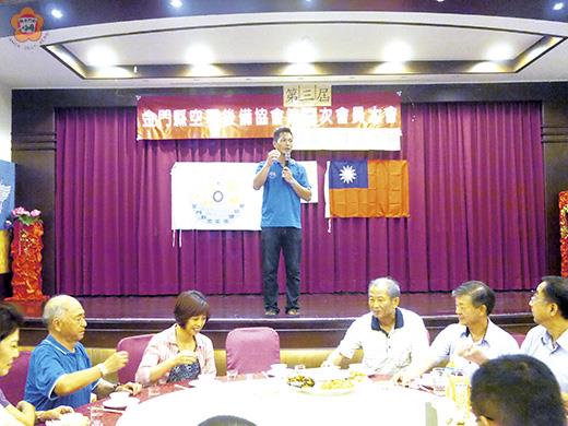 為慶祝814空軍節,金門縣空軍後備協會特別舉行慶祝活動並召開第三屆第二次會員大會,由身兼理事長的縣議員李應文帶領現場近一百二十位會員及眷屬,齊唱國歌與空軍軍歌,慶祝814空軍節活動,加上金門縣臺灣原住民協會帶來熱鬧的原民舞蹈及大會舞,現場熱鬧非凡。 金門縣空軍後備協會慶祝814空軍節暨第二次會員大會假盈春閣餐廳舉行,縣府秘書長林德恭、縣議會議長洪麗萍、縣議會副議長謝東龍、縣議員張雲德、縣議員洪允典、縣議員陳滄江、縣府社會處處長甯國平、金寧鄉鄉長陳成勇、金門縣榮民服務處副處長呂媽定、金門縣後備服務中心主任許澤鑫、金城鎮代表會主席陳天成以及金沙商務大飯店總經理楊其勳等人均到場祝賀及與會。 到場與會的縣府秘書長林德恭表示,814是空軍光榮的日子,空軍健兒突破困境的精神在金門得以延續成立此協會,將是地區另一股支持地方發展的力量,更代表陳縣長表達感佩之意,也希望協會在李理事長的帶領下為地方建設帶來更大的支持力量。議長洪麗萍則表示,聽到大家唱國歌與空軍軍歌感動非常,藉此會員活動的凝聚,期許不管是陸海空軍都能進一步發揮其力量,並代表縣議會祝福大會成功、閣家平安。 會員大會中由理事長李應文頒發聘書予顧問李國基、謝東龍、楊其勳以及榮譽理事長黃仁德;並報告上次會議決議案之執行情況與會務,亦完成兩項提案之決議。 理事長李應文表示,今年是空軍成立79週年,金門縣空軍後備協會成立也已5年,協會就像個大家庭,此次邀請會員的家人一同與會,目的即在讓會員的家人也能相互交流。迄今會務得以順利推動,非常感謝各位理監事、協會幹部群以及眾會員的支持,謝謝各位長官到場以及會員的熱絡參與,今年8月初與廈門台辦的初次交流,業已邀約廈門台辦參加明年814空軍節慶祝活動,期許能為協會帶來更多正向有意義的互動。