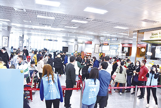 農曆新年的春節連續假期昨(廿九)日結束,尚義機場湧現大批收假人潮,許多返鄉過年的鄉親返回工作崗位,二家航空公司金門台北航線班班客滿,縣府觀光處副處長李銘培代表楊縣長到場關心了解輸運情形,並和立委陳玉珍金門辦公室與金門航空站協調,於昨日傍晚增開一班軍機輸運旅客,讓所有返鄉過年的旅客「有機可乘」順利返回工作崗位。 今年春節許多除夕年前或是大年初一後返金過年,或趁著年假來金玩過年的旅客,紛紛趕著在昨日返台。尚義機場昨日一早湧進大批準備返鄉的遊客和收假返回工作崗位的人潮,台金空中運輸出現收假尖峰,一波波旅客攜家帶眷,帶著大、小包行李到機場候機,也有訂不到理想班次的民眾前往候補,使得機場大廳人潮滾滾,各航空公司櫃臺前等著候補的人群。 金門航空站表示,昨天台金航線各航空公司表定往返51班次台金線航班,在天公作美下都能順利成行,二家航空公司飛往台北各航班幾乎班班滿載,而且因機票是限當日當班次有效使用,所以各航班旅客報到率極高,候補機會很少。為確實掌握候補需求人數,縣府觀光處和金門航空站人員全日進駐,並每隔二小時清點現場候補人數,直到下午五時後清點人數達到,經縣府、立委與金門航空站協調軍機,並請旅客在聯合候補單一窗口作業櫃臺辦理軍機叫號,於昨日傍晚協調增開一班軍機輸運旅客,讓所有返鄉過年的鄉親順利回到台灣。 值得一提的是,金門航空站為疏解109年度春節期間大量返臺旅客成立「聯合補位單一窗口」服務櫃檯,自1月日28上午6時30起至1月30日止為期三天,將提供旅客迅速便捷之補位資訊服務,達到公平公正公開之原則,減少無謂紛爭並維護機場秩序,同時邀請各單位協調臨時加班機或軍機以加速疏運旅客,讓每位鄉親都可以安心迅速返回工作崗位。