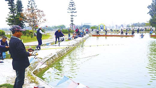 享受垂釣樂趣,又不用跑到海邊吹冷風,水試所每年在大年初一至初三,都會舉辦「樂不思蜀釣魚趣」的活動,昨(二十四)日一早活動開放後,就吸引不少喜愛釣魚的釣客前往,活動還有兩天,走春的鄉親不妨也可以前往體驗一下。 「樂不思蜀釣魚趣」的活動地點是在水試所大門入口處的二口試驗池,並在大年初一的上午開始,陸續投放體重約八百至一千公克左右的「紅鼓魚」,共計放置約一千餘尾的數量,以提供作為鄉親垂釣之用。活動是從初一至初三,每日上午九時起,至下午四時為止,採取「開放自由垂釣」的方式,但是釣具、釣餌與簍具方面則需要由鄉親們自行準備,現場不收取任何費用。