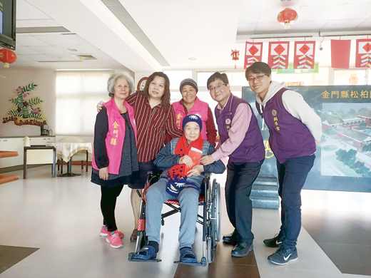 春節前夕,金門榮服處處長呂媽定與副處長劉信義、總幹事李文國,近日率同相關同仁分別親訪轄內中低收入戶、雙老、獨居榮民眷及入住安養機構之年長榮民,除關切日常生活外,並詢問生活急迫所需。 此外也發放中低收榮民(遺眷)春節慰問金,另對於榮民也贈送乾麵禮盒及保暖圍巾,讓家境清寒、年邁獨居或行動不便乏人照顧的榮民眷等親身感受到榮服處的貼心關懷。 呂媽定於發贈榮民眷保暖圍巾同時,更親自為長輩們披上圍巾,貼心的動作讓老人家們既開心又感動,呂媽定同時提醒長輩們注意天候變化,做好保暖禦寒作為,非有必要及家人陪伴切勿獨自外出。 呂媽定也向榮民眷長輩們提前祝賀農曆年節及祝福闔家新年團圓平安,老人家們臉上神情莫不顯露出滿足與歡愉的表情,這也是對服務處同仁們最大的回饋與收穫。