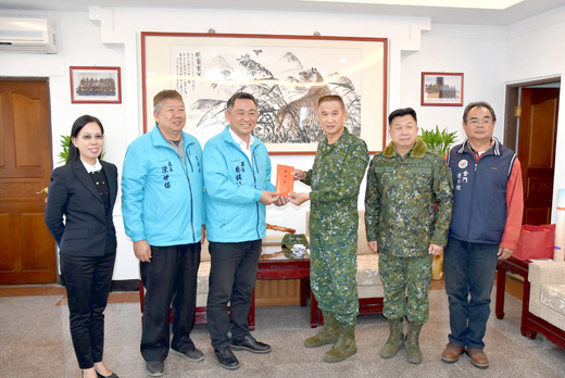 春節將至,縣府昨(13)日展開勞軍慰問行程,由縣長楊鎮浯親自前往陸軍金門地區支援營(醫療連)、金門守備大隊機步營、海巡總局第九海巡隊、中部地區巡防局第九海岸巡防總隊、空勤總隊第二大隊、金門醫院、金防部,慰問辛苦的弟兄及工作人員,並致贈加菜金。 在本縣衛生局及民政處的安排下,縣長楊鎮浯昨日下午與衛生局副局長李金治、民政處處長陳世保等人,先後前往金門守備大隊機步營、陸軍金門地區支援營醫療連(軍機場)、中部地區巡防局第九海岸巡防總隊、海巡總局第九海巡隊勞軍、金門醫院、金防部等單位慰問,各致贈加菜金。 楊鎮浯與各單位主管短暫拜會交談,他感謝金門守備大隊機步營每週二、五協助載送急重症病患軍機場搭乘C130赴台就醫,海巡支援二線烈嶼鄉病患夜間載運、緊急醫療轉診至金門醫院就醫及安寧返鄉等載運事宜的愛民表現。 楊鎮浯也感謝支援營醫療連長期支援本縣大型活動醫護及例行後送病患接送、岸巡隊積極查緝走私維護本縣治安。楊鎮浯也感謝金門醫院肩負金門在地鄉親、台商及旅客之醫療照護重任,及感謝空勤總隊協助本縣載運緊急傷病患空中運輸轉診作業。