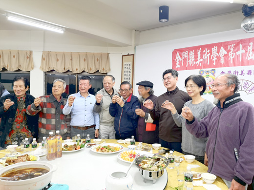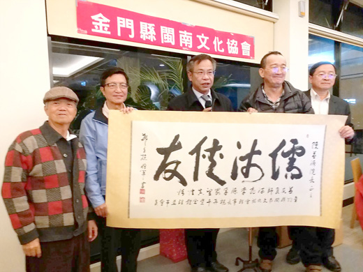 金門縣閩南文化協會日前舉行「己亥年尾牙宴」,由理事長楊再平主持,共有會員及來自兩岸三地貴賓近50人出席參加,並致贈「儒師俠友」橫幅感謝即將於二月借調金門大學二年任教期滿的人文社會學院院長陳益源,以及通過宣布聘任台灣南華報金門特派員管人杰為秘書處新任副秘書長,此外協會還預定2020年組團訪問兩岸各有關閩南文化相關單位或社團和推動兩岸及金門「閩南文旅」主題遊程和活動。 金門縣閩南文化協會於10日在藍孔雀私房食堂舉行「己亥年尾牙宴」,出席貴賓包括金大人文社會學院院長陳益源、金大閩南文化與僑鄉數位典藏中心主任劉名峰、金門縣政府觀光處處長丁健剛、海峽和平網主席李民欽、秘書長李莉蓁、海西書畫院院長許嵩、中韓書畫交流協會理事劉煥福、宜誠資訊總經理李耀明暨文物普查團隊、金門縣規劃師協會理事長許丕肯,以及副會長吳啟騰、副會長陳宗保、魏本嵢等理監事和會員包括金門寫作協會前理事長楊清國、金門傀儡劇團團長蔡遠進、金門浯島千順神將文化推廣協會理事長許亞仁、金門自駕旅遊協會理事長蔡佩純、金門原住民義工學會理事長高凡■、金門國際扶輪社前會長李松財、金門鄭氏宗親會理事長鄭藩派、駐廈聯絡代表楊壽強等共約近50人參加,分享年終的祝福。 金門縣閩南文化協會為感謝閩南文化專家、金大人文社會學院院長陳益源在金門任教期間的指導協助,特別致贈由理事長楊再平撰、請鄭有諒將軍書寫的「儒師俠友:益師良友滿桃李,源孚眾望真性情」橫幅,受到全場會員的熱情掌聲,現場理監事和會員一致通過邀請陳益源院長擔任協會的永久顧問。 理事長楊再平表示,2020年協會預定將擇期二度組團訪問兩岸各有關閩南文化相關單位或社團,以及將結合金門、台灣和大陸兩岸觀光旅遊和閩南文化與民俗資源,推動「金門閩南文旅」主題遊程及活動,推展與研學閩南文化之美。