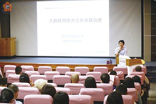 為了幫公務人員充電,以提升各項職能,金門縣政府人事室於昨(二十七)日舉辦一場「一○五年度『政策傳承與創新』巡迴研習」,邀請各領域的專家來金,為縣府各局處室人員上課,強化公務人員的本職學能。 由行政院人事行政總處地方行政研習中心主辦、金門縣政府人事室承辦的「一○五年度『政策傳承與創新』巡迴研習」金門縣場次,於昨日上午九時起,在金門縣政府多媒體簡報室舉行,邀集縣府各單位人員到場聽講。 這項研習課程自上午九時起至下午四時四十分為止,共計有三堂課程,內容規劃有「大數據與地方公共事務治理」、「醫療整合與國民健康」、「景觀生態公園─Maple Garden美麗的誕生」。課程邀請國家發展委員會資訊管理處處長簡宏偉、衛生福利部國民健康署組長林宜靜、東海大學行政管理暨政策系副教授魯俊孟等人來金授課。 簡宏偉以「大數據」的運用,向現場聽眾說明如何有效運用於公共事務的治理上,他認為在資訊社會當中,掌握「資料」者,更能掌握競爭優勢,而電子化的政府,就是要以資料為核心,創造公共治理的一種新模式。 而在數據資料運用上,未來的推動方向,在策略面上,簡宏偉認為應建立產政學合作管道,提升資料應用價值,以解決政府施政課題;並且推動個人資料去識別化的驗證標準,以避免資料應用上所衍生的隱私侵害之問題。在產業面方面,應該要健全資料應用的基礎環境,並從法規、人力、技術、資訊資源等面向,帶動資料經濟產業發展。在學術研究面向上,應該要鼓勵政府機關釋出資料,以提供學術界去研究,進一步提升資料應用鏈結的綜合效果;並且應建構共用性資料運算平台的合作模式,以支援機關進行資料應用。 國民健康署組長林宜靜則是以公共衛生與衣料整合對國民健康的影響為題,闡述預防保健、健康促進、醫療合作等議題。他從台灣健康狀況、預防資學與醫療照護、生命週期各項預防保健服務、健康促進與國民健康、健康管理服務模式等子題來探討國民健康。 課程中,林宜靜提出「健康促進醫院」的概念,認為將健康促進的觀念、價值與準則融入醫院組織的文化與日常工作中,以此影響員工、病人與家屬,進一步增進健康照護品質,以及維持或促進員工、病人、家屬、社區居民的健康。因此,諸如戒菸門診、預防保健、母嬰親親善、糖尿病防治、肥胖防治、慢性腎臟病防治、高齡友善健康照顧、健康促進職場、節能減碳等多樣的面向,都是屬於健康促進醫院的推動範圍之內。