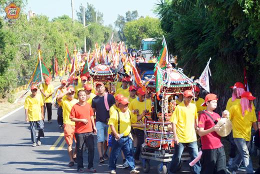 農曆六月廿四日為關聖帝君誕辰紀念日,古寧頭雙鯉古地關帝廟管理委員會一連二天為關聖帝君舉行做醮慶典,縣長陳福海、議長洪麗萍、金寧鄉長陳成勇、金寧鄉代會主席陳成泉相繼前往上香敬賀,祈祝地方風調雨順。昨日下午,關聖帝君起駕巡安南山、北山、林厝三聚落,鎮五方,金門縣公揹婆民俗協會、東門境公揹婆藝陣、金門天后宮媽祖會特色藝陣,也加入繞境巡安,神輿、陣頭旗幟、藝陣,響個不停的鞭炮聲,將整個村落渲染得熱滾滾。 每年農曆六月廿四日為古寧頭居民慶祝關帝聖誕的大日子,古寧頭雙鯉古地關帝廟管理委員會一連二天舉行做醮慶典,各界相繼前往上香敬賀,祈祝地方風調雨順、國泰民安,並敬獻爐敬金祝賀,受到該廟管理委員會主任委員李開陣、總幹事李金鎗和地方鄉親的歡迎。李開陣歡迎鄉親、遊客逗陣來參與古寧頭民俗宗教慶典活動 昨日下午的遶境巡安是廟慶的重頭戲,也是活動的最高潮,包含南山、北山、林厝等三聚落本地和旅居外地居民,會齊聚於關帝廟參與遶境,村民虔誠迎請關聖帝君及諸神明起駕巡安。金城鎮的醒獅隊、金門縣公揹婆民俗協會、東門境公揹婆藝陣、金門天后宮媽祖會特色藝陣,也前來逗熱鬧,隨著關帝爺一同巡安。 在大鑼、凸燈的開道下,遶境巡安隊伍依序為關帝爺陣頭旗、祥獅獻瑞醒獅隊、南山、北山、林厝三聚落的廟宇陣頭-太子爺輦、南山旗鼓輦、林厝旗鼓輦、媽祖會特色藝陣、公揹婆藝陣,神輿、神將和陣頭隊伍梭巡古寧頭三聚落的境內,炮竹齊響,神輿飛舞,鞭炮聲不絕於耳,將古寧頭渲染得「神氣十足」,掀起慶典活動的最高潮。沿途,村民設香案祝禱諸神明護佑闔家平安,流露出村民的虔誠信仰。 前縣長李沃士、金寧鄉長陳成勇、雙鯉古地關帝廟管理委員會主委李開陣、鄉代表李正騰和善信一同護著關聖帝君巡安。 許多返鄉遊子、古寧頭媳婦邀請台灣親友回家鄉參與金門傳統廟會慶典活動,還有觀光客,夾道觀看迎神的熱鬧場面。公揹婆的特色藝陣,小朋友和大人一起舞動的逗趣畫面,吸引注目,觀看演出,小小公揹婆也是遊行隊伍中的鎂光亮點。大、小公揹婆,沿途上的表演,動作滑稽詼諧,尤其小朋友們巧扮古裝公揹婆的逗趣演出,更是吸引許多民眾爭相拍攝。