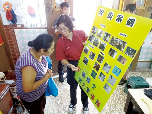 金門地區一般家庭中,常見外籍看護協助幫忙照護老人或獨居長者,為免於居家有火災災害狀況發生,外籍看護無法立即反應應變及不知曉火災之特性,以及火災發生前之徵兆及應留意之狀況!金城消防分隊結合金城婦女防火宣導隊前往轄區東門里辦理家戶訪視防火宣導,有效降低住家火警發生之機率。 金城消防分隊舉辦的家戶訪視防火宣導活動,由職消及替代役結合金城婦女防火宣導隊志工隊員陳韞玉、陳意玲等人,深入轄區村里傳遞重要的火災案例,以及宣導防火防災知識和避難逃生的方法。 在家戶訪視宣導,城消特別將金門地區實際發生之火災案例融入消防看板宣導內容中,並區分成電氣因素、祭祀不慎及烹調不慎等真實照片案例,宣導於金門地區照護老人之外籍看護,期能使對金門地區常發生之火災類型有一定的認知,附上圖文並予詳細解說,期望有狀況發生時外籍看護能有一定之認知及反應作為,減少危害性,維護居家安全。 金城消防分隊指出,金門家中較常發生之真實火災案例,分別為烹調不慎、祭祀不慎及用電因素,用電不慎方面來論,延長線使用電流過載、用電電線纏繞使用使局部高溫、電線線路重壓於家具、衣櫃、桌椅下方造成內部銅線部分斷裂造成半斷線現象,導體的電阻值相對增高,造成電流流經此處時產生局部過熱,而使導線絕緣及周圍可燃物起火燃燒。