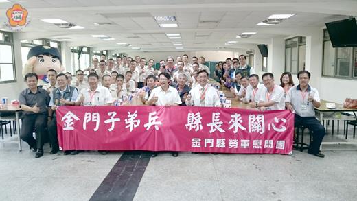關心縣籍入營受訓役男,金門縣政府昨(28)日由副縣長吳成典率隊,在民政處長陳世保、金城鎮長石兆瑉、金湖鎮長蔡西湖、金寧鄉長陳成勇、烈嶼鄉秘書方小萍、軍友社金門聯絡組組長盧清土、民政處兵役科代理科長陳柏嘉、承辦人辦事員莊凱倫、縣府中部服務處主任陳家財、臺中、彰化、南投同鄉會理事長等人陪同下,前往臺中成功嶺勞軍,慰問本縣正分別於替代役訓練班及陸軍步兵第104旅受訓之替代役第165-2梯次、第166梯次及陸軍軍事訓練第0042梯次役男。 勞軍團一行,第一站首先至成功嶺替代役訓練班慰問受訓替代役役男,第二站則至陸軍步兵第104旅慰問受訓陸軍軍事訓練役男。在內政部役政署副署長沈哲芳及執行秘書蔡清治等役政署同仁、104旅政戰主任張志威、營長林坤幗陪同下,與縣籍替代役、陸軍軍事訓練役受訓役男齊聚一堂,共話家常,役男們暫時擺脫嚴格的訓練課程,享用勞軍團帶來的每人1份肯德基套餐,又看到熟悉的故鄉長官,心情都非常愉悅。 內政部役政署沈副署長致詞時對吳副縣長率團跨海遠道而來關心役男,並帶來加菜金、慰問金、慰問品,直說金門役男真有福氣,也表示金門役男過往在各新訓中心的表現都非常良好,受訓期間也很少出狀況,並表示已叮囑訓練幹部要好好照護金門役男,讓其平安順利結訓;吳副縣長致詞時感謝沈副署長及各級訓練幹部對縣籍役男的愛護,他也表示,本年度因為國防部、內政部役政署訓練規劃有別於往年,金門縣陸軍軍事訓練役男改至臺中成功嶺受訓,因此陳福海縣長特別指示民政處辦理本次活動,並請他率團與各鄉鎮長一同來關懷本縣役男入營後之起居情形,吳副縣長亦特別表示他40幾年以前也曾在臺中成功嶺受訓過,是役男們的「大學長」,這也是他就任副縣長以來參加的首次勞軍活動,看到役男個個精神抖擻,體格也健壯了不少,心裡感到非常欣慰,對於訓練幹部對金門入營役男的訓練、關懷,表達由衷的謝意。 金門縣政府民政處指出,本次在成功嶺接受入營訓練之役男替代役第165-2梯次有2名、第166梯次有28名,陸軍軍事訓練第0042梯次則有90名,總計120名役男。縣府勞軍團除了致贈每人1份肯德基套餐及慰問金新臺幣1000元外,亦分別致贈替代役訓練班加菜金新臺幣2萬元、陸軍步兵第104旅加菜金新臺幣4萬元,希望讓縣籍役男伙食好上加好,充足精神,迎接剩下的訓練課程,順利結訓。