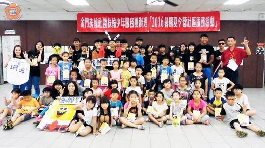 2016國小學童「海綿寶寶夏令營」社區服務活動,一連兩天精彩豐富的內容已圓滿落幕,由金門扶輪社暨扶輪少年服務團成員規劃設計課程內容,大手拉小手帶領四十餘位國小一至四年級學生,從團康、大地遊戲、RPG遊戲、學科課程教學及有獎徵答等,讓學子在團隊中互相認識,攜手合作完成任務,培養互相關心的精神,內容豐富有趣,小朋友期待明年能再次參加。 扶少團每年於寒、暑假透過營隊活動,在服務中陪伴地區國小學童度過假期,豐富學習。今年2016國小學童「海綿寶寶夏令營」,吸引四十餘位國小一至四年級學童報名參加,為期兩天時間齊聚金門高中藝文中心及校園各處展開學習之旅。扶少團總籌楊翔博、副總籌黃薇及二十位工作夥伴分工合作,從前置準備及在營隊中扮演各種角色,值星官呂語桐,鐵面無私任務指示,陳立楷詼諧逗趣的宣誓等,以及活動前後話劇、舞蹈精彩演出,帶給小朋友不一樣的視覺感受。 而在為期兩日的活動中,不只有學科課程教學,還分組進行各項室內和室外闖關遊戲,如小隊活動、團康遊戲、大地遊戲、RPG遊戲、教室課程教學暨有獎徵答等,並於活動最後將照片剪輯成影片,呈現豐富、精彩的活動內容,與會小朋友HIGH翻天,也希望明年能夠再參加。 扶輪少年服務團指導老師張序伯表示,舉辦該活動的目的在讓國小學員有個充實的暑假生活,並將扶輪少年服務團服務社區的精神向下紮根,並使其發揮扶輪「進來學習、出去服務」理念,也藉以該社的服務熱忱延伸到校園,培養國小兒童拓展開闊視野。活動感謝金門高中學務主任林偉倫、訓育組長陳韻戎、金門扶輪社2017-2018社長當選人顏少棠等人到場關心與支持。 多次參與活動的學員廖千媛說:在隊輔哥哥、姊姊們的帶領下,分組和其他成員完成團康、闖關、大地遊戲、健康操等任務。過程中也穿插做話劇表演,課程設計安排豐富有趣,而隊員之間也從陌生到熟悉,更結識到好朋友,這也是在活動中最大的收穫之一。 快樂時光易逝,2016國小學童「海綿寶寶夏令營」社區服務活動假金門高中視聽教室舉行結業式,隊員們自隊輔手中接過結業證書及小禮物,彼此也在烏龜卡留言道祝福,也為活動畫下圓滿句點,相約明年再見。