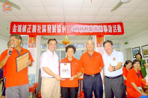 圖文/陳冠霖 正義社區發展協會日前正式成立「社區媽媽教室」,由媽媽教室成員準備在地美食,烹飪創意料理,如菜棵、米粉、花蛤等料理。副縣長吳成典、立委楊鎮浯、社會處副處長許美鳳、金湖鎮公所秘書黃景俊等貴賓蒞臨指導。正義社區發展協會同時表揚銀髮族供餐志工陳楊蘇治、林金鐲、李金華、林玉蜜、黃麗花、陳張雪增、陳碧月、柯家蓁、王藝雲等人。