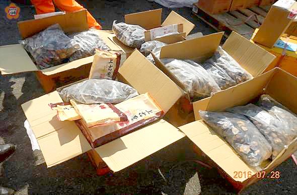 查獲走私大陸香菇!岸巡隊28日在料羅港區進行貨物安檢時,查獲一批大陸走私香菇(如圖)共55.2公斤,準備運往高雄港,及時攔截! 海巡署中部地區巡防局第九海岸巡防總隊安檢人員,28日於料羅商港港區執行準備運往高雄港快遞貨物拆檢時,查獲疑似大陸香菇一批,經岸巡人員清點後共計10箱(40包),淨重55.2公斤。全案將依違反「試辦金門馬祖澎湖與大陸地區通航實施辦法第26條」,函送財政部關務署高雄關金門辦事處裁處。 第九海岸巡防總隊副總隊長吳建冠表示,料羅商港為金門對台灣本島唯一輸運港口,為避免不肖業者趁機將大陸劣質農產輸台牟利,對於運往台灣貨物檢查更為提高檢查標準。28日下午料羅安檢所人員執行快遞貨物檢查勤務時,發現其中夾藏疑似大陸香菇共計10箱,淨重55.2公斤,遂將該批疑似大陸農產品完成清點後,後續將依違反試辦金門馬祖澎湖與大陸地區通航實施辦法第26條「農產品單項不得逾1.2公斤,總量不得逾6公斤,且禁止以郵包寄送;攜帶應稅貨物或管制物品匿不申報或規避檢查者,沒入其貨物」,函送財政部關務署高雄關裁處。 第九海岸巡防總隊呼籲,大陸的劣質香菇通常都沒有很好的保鮮處理,甚至回溼受潮,產生霉變,另未經檢驗的大陸香菇等,亦可能含有鉛、硫、砷等有毒物質,對人體呼吸系統及肝、腎均有重大危害。切勿貪圖小利鋌而走險、觸犯法律,亦危害國人健康。 第九海岸巡防總隊亦表示,海巡單位對於查緝不法活動皆不收取任何費用及餽贈,廉能是政府的核心價值,公務員應堅持廉潔、拒絕貪腐。海巡署為維護國人健康及生命財產安全,民眾若發現不法情事,請多利用海巡署「118」免費服務專線,共同為創造安定祥和的社會而努力。