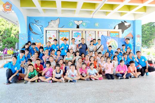 來自全國各大學院校藝術科系大學生,組成偏鄉藝術教育服務營隊,於七月二十一至二十三日在湖小展開「湖小藝術夏令營」活動,並於昨天進行結訓典禮,小朋友們除了齊聚在川堂進行話劇與舞蹈表演外,同時在創作的彩繪牆前合影留念,為此次活動劃下完美句點。 這場結訓典禮是在昨天下午二時於金湖國小川堂舉行,由金湖國小校長陳為信主持,縣府教育處處長李文良也出席與會,現場更是吸引大批的家長們到場觀禮,為完成研習活動的小朋友們記錄下精彩的一刻。 在連續三天的活動中,講師們安排了繪製公佈牆、藝術開發、身體探索等課程,昨天的結訓典禮中,並集體大型藝術創作、戲劇舞蹈律動…等多元藝術課程,帶領學生共同發揮想像力並體驗藝術展演、肢體表達、大型彩繪的樂趣。課程可說是相當充實豐富。 教育處長李文良則鼓勵小朋友們的精彩表現,他並指出,教育最重要的就是在於啟發,帶領學生們瞭解自己本身的環境,啟發學生們動手思考創作。從夏令活動中他看到小朋友們的創意與彩繪技巧,更有許多小朋友們思考未來校園進行改建工程時,如何著手彩繪生冷的建築牆面,這才是教育最大的意義。