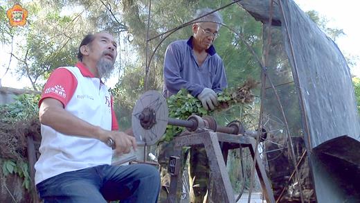金門的落花生美味可口,是許多鄉親們搶購的美味農產之一,更是金門名產「貢糖」的主要原料之一。但是地區花生種植的農民們,利用徒手採收的方式,耗工耗時,相當辛苦。現在金門在地的鋼雕藝術家吳鼎信看到這種情況之後,以廢棄的材料研發出一台不需電力的手工「落花生採收機」,僅僅透過簡單的機械原理,將採收時間縮短為傳統方法的十分之一而已。 農作物的採收機器其實在市面上也是可以買得到的,但是金門地區的農民,其種植花生的面積普遍都不會太大,多是屬於小農生產而已,對於一台要價不菲的機器,若再加上機器發動的電費以及油料費用,實在所費不貲。現年已經六十三歲的花生農蔡顯偉在瓊林風獅爺旁的樹蔭下,用手把花生一顆顆地從花生葉上採了下來,經年累月之下,也讓他的手指不僅都變形了,更是長滿了厚厚的繭。 金門花生顆粒較小但香味十足,因此也吸引不少民眾爭相採買,雖然現在正好是花生盛產的時間,但是吳鼎信說,他也發現到金門地區種植花生的農民們似乎有日漸凋零的現象,他之前到了親家蔡振來的家中走動時,看到兩夫婦們剝花生時辛苦身影,忽然靈機一動利用一個星期就組裝好一台免插電的機具,也充分地將廢材加以運用。 對於花生農的辛苦,吳鼎信說道,種花生其實不累,但是採收花生時卻是最為辛苦的。金門花生農們長期以來,都是以徒手方式來剝花生,現今農務工作是年輕人不喜歡做的,因此每當到了花生收成的季節,就只見到夫妻兩人一顆一顆的慢慢剝,也是令人不捨。 吳鼎信先生,是金門地區知名的一位藝術家,他相當擅長鋼雕方面的藝術,而他也利用身邊可以取得的廢棄材料,諸如研磨機的基座,加上鋼條、鋼片、齒輪、軸承,再將鋼條打造成稜形網格轉盤,只要把花生葉放在轉盤上,再用手搖動轉盤;藉由花生頭大尾小的這項特色,花生一碰到稜格後就能輕鬆將其夾落,也能很快的完成採花生動作。 吳鼎信製作完成的這台花生採收機,他的親家蔡振來使用後,開心的說,有了這台簡易機具之後,以往裝滿一台獨輪車的花生,平均大概需要三至四個小時才能順利採收好,不過現在差不多半小時就能夠做完,比起過往是既省時又省工。 這個採花生的機具並不需要插電,因此對於農民而言,可以將其方便的攜帶到田間使用。吳鼎信說,這台機器大約可以抵上十個工作天。對於地區人口日益老化,以及務農的年輕人口不多的情況下,他的這項小發明也希望可以為地區老農們做到分憂解勞。提及是否會量產,吳鼎信則說,因為金門花生種植面積不大,他並不考慮大量生產機具販售。