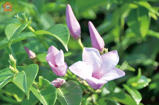 圖文/李增汪 炎炎夏季裡,能看到花團錦簇景象,真是賞心悅目。像這些伯萊花,淡粉紅色的花苞綻放,真是美不勝收。 一株長成的伯萊花,一次開花可有上百朵,不足為奇;淡粉紅色的花朵在綠葉夾雜中盛開,令人賞心悅目。 伯萊花,別稱橡膠紫茉莉。原產地為印度、馬達加斯加。 學名Cryptostegia grandiflora;分類為扛柳科。型態落葉藤本,可以攀爬高達十五公尺;葉端鈍、具短突尖,葉基鈍,全緣,葉兩面均平滑,革質;羽狀側脈八至十二對、不太明顯,僅中肋顯著,葉背綠色,無托葉,葉柄長零點三至二公分,葉長十至十二公分,葉寬三至五公分。 橡膠紫茉莉由六至十二朵小花形成聚繖花序,合瓣花,成熟時由綠變褐色。花期六至七月。 橡膠紫茉莉的繁殖,採播種、枝插、高壓或者是壓條法來進行繁殖。