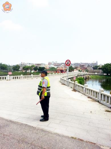 圖文/翁維智 位於金沙鎮汶沙里前的榮湖,是築堤圍堵金沙溪而成的湖泊,蓄水面積16公頃,當年經國先生特命名為「榮湖」,寓有欣欣向榮之意,湖前有涼亭及碑石,為小鳥聚集及遊客賞鳥的據點之一。而虎嘯橋跨湖而過將湖一分為二,是汶沙里民穿越湖心最便捷的聯外道,唯因橋樑並未對大車的通行設禁,致橋面時有破損的情事發生,安全堪虞。 為防患未然,縣警局日前於道安會報中特別提案「請於榮湖虎嘯橋兩端設置8噸以上車輛禁止進入標誌各1支」及「道路及橋樑提出禁止20噸、12噸或8噸等以上車輛禁止進入標誌之設置事宜。」 經決議,警方日前已配合觀光處,在金沙鎮榮湖虎嘯橋完成設置限制8公噸以上車輛進入禁止標誌牌,並立即責成轄區分駐所不定期前往巡查,勸導取締違規車輛,希望能有效防杜8公噸以上車輛違規駛入。