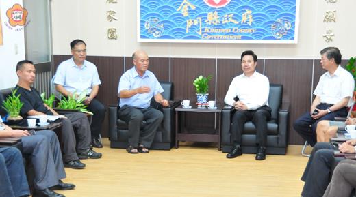 甫上任的金門地檢署檢察長徐錫祥昨前往議會拜會,議長洪麗萍歡迎檢察長徐錫祥再次到金門來服務,徐錫祥稱讚金門是有歷史、有風景的好所在,並希望今後需要地檢署幫忙,或是需要議會協助的互相聯繫。 法務部於日前發布人事命令,福建金門地方法院檢察署檢察長職務由臺灣高等法院臺中分院檢察署檢察官徐錫祥陞任,原金門地檢署檢察長王文德調任臺灣臺東地方法院檢察署檢察長,並已於本(七)月十八日交接到(卸)任。 昨日下午二時五十分許,新任金門地檢署檢察長徐錫祥由書記官長董秀珍陪同前抵議會拜會,受到議長洪麗萍、秘書長洪允典、議事主任陳勵志、總務主任楊誠國、人事主任呂清富、會計主任汪秋明、秘書呂世忠等人的歡迎接待。 議長洪麗萍指出,金門目前的人口數已經增加到十三萬人,議員也從十六席增加到十九席,也歡迎徐錫祥檢察長再次到金門來服務。 檢察長徐錫祥指出,他曾於九十一年、九十二年在金門當主任檢察官,對金門不陌生,金門人情味濃,很多鄉親都有親戚關係。他也提到,離開金門多年,去年來金門時發現金門很多農田種豪宅,這也表示金門發達了,鄉親有賺到錢。 議長洪麗萍說,主要是因為自然村限制建築,加上子孫繁衍,原有房舍不夠使用,只得另蓋房子來住。 秘書長洪允典補充說,年輕人從台灣回來金門,原有建築住不習慣,只好找地另蓋房子,建地上蓋到農地上面。因為都市計畫沒有做好,雖然地區想做,但中央不給政策,造成農舍一直蓋。 徐錫祥檢察長也認為應該稍微做一點限制,規劃上要有特色,一開始就要統一律定,不要像台灣樓頂鐵皮屋,搭飛機從上面看感覺很醜,地方建設規劃的建議與監督需要靠議員。 議長洪麗萍認為,中央應該充分授權,地方才好做事,議員也常建議,不能老適用台灣的那一套思維來規範金門,根本無法適用,在金門整體發展上,中央是關鍵,應該以「特區」的論點來看金門。 洪允典秘書長也有感而發地說,金門有句「住山裡靠山、住海邊靠海」俗諺,但是對於海邊的規劃開發,動不動就遭到環保團體的反對,無法進一步進行。 晤談中,雙方也就大陸近年來發展快速,但是文化水平沒有跟上、人民生活教育要提昇等議題交換看法。 新任金門地檢署檢察長徐錫祥,民國51年次,原臺灣高等法院臺中分院檢察署檢察官,法務部司法官訓練所司法官班第31期結訓,國立中興大學法律研究所碩士畢業,79年特種考試司法人員考試乙等考試司法官考試及格,曾任彰化、臺中地檢署檢察官、金門地檢署主任檢察官、彰化地檢署主任檢察官、臺中地檢署襄閱主任檢察官、臺中高分檢檢察官並借調行政院海岸巡防署政風處擔任處長等職務,行政、檢察閱歷豐富。