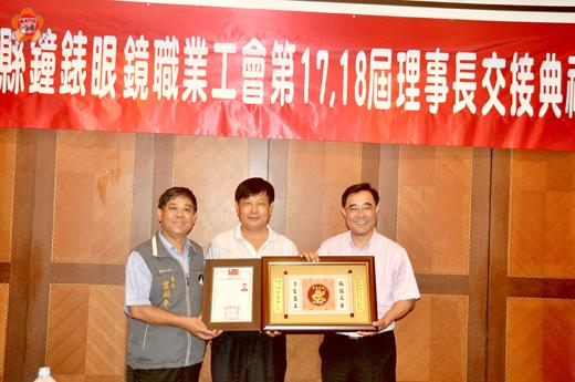 金門縣鐘錶眼鏡業職業工會昨日舉行第十八屆理事長交接儀式,副縣長吳成典代表陳縣長致贈紀念匾祝賀,同時頒發理事長當選證書,印信交接也由原任理事長李福山交棒予新任理事長胡根結。副縣長吳成典前往祝賀,期許新任理監事協力推動會務,發展組織,同時多連絡同業情感、增進同業技能、維護同業權益與福祉之爭取,進而改善同業生活,使無後顧之憂。 金門縣鐘錶眼鏡業職業工會第十八屆理事長交接儀式,於昨日下午六時假盈春閣餐廳舉行,副縣長吳成典、縣府社會處長甯國平、縣長室秘書許金象、金城鎮民代表會主席陳天成、秘書蔡木川、金城鎮公所主任秘書黃耿銘、大同之家主任楊志斌、金門縣總工會理事長曾宗慶、前任理事長李永文、總幹事張延壽等來賓也應邀在場觀禮祝福。 這項交接儀式由副縣長吳成典代表陳縣長轉頒發理事長當選證書給予新任理事長胡根結,並轉贈陳縣長贈送紀念匾祝賀。吳成典說,新任理事長胡根結擔任過該會多年的監事,這一屆在會員的支持下榮膺理事長一職,對會務可說是駕輕就熟,一定會提供好的服務。也感謝李福山多年來熱心工會會務的貢獻。期許新任理監事協力推動會務,發展組織,同時多連絡同業情感、增進同業技能、維護同業權益與福祉之爭取,進而改善同業生活,使無後顧之憂。 到場嘉賓也語多祝福,並鼓勵新任理監事再接再厲、群策群力,一本過去開創未來、貢獻自我,為美好的明天共同努力!