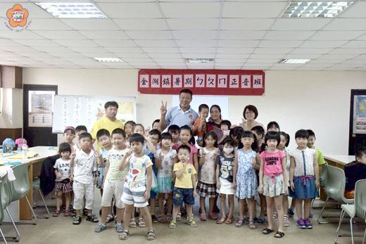 孩子說話正音從小開始!金湖鎮公所舉辦「ㄅㄆㄇ正音班」,19日在金湖圖書館正式開課,吸引30多個幼兒園大班學童報名,金湖鎮長蔡西湖親自到場參加開課典禮,他表示,注音符號是國語文教育的根基,讓孩子能夠透過正確的音韻,學習到拼音的完整概念。 金湖鎮公所於7月19日至30日,每天09:00~11:00,開辦金湖鎮暑期「ㄅㄆㄇ正音班」,供幼兒園大班學童報名參加,上課地點在金湖圖書館3樓。「ㄅㄆㄇ正音班」課程內容包括,針對韻符、聲符教學、聲調、拼音、比對練習、語調變化循序漸進。採多元化及生動活潑的學習方式,認識注音符號、韻母正確發音及書寫方式、拼讀練習,幫助孩子認識的37個注音符號的唸法及書寫、拼法的熟悉,擁有能認讀短句、詞語及基礎習寫的能力,增進語文學習的興趣,以銜接未來國小生活。 金湖鎮長蔡西湖表示,注音符號是國語文教育的根基,也是打開智慧寶庫的鑰匙,透過拼音享受閱讀的樂趣之外,更教導孩子正確的發音,讓孩子能夠透過正確的音韻,學習到拼音的完整概念。