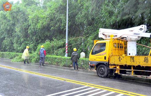 圖文/楊水詠 來勢洶洶的尼伯特颱風對金門島構成威脅,縣長陳福海關注颱風最新發展動態,並要各單位嚴陣以待,加強防颱及防洪戒備工作,以減少災害損失,維護鄉親生命和財產安全。為確保道路交通及縣民用道安全,林務所昨天一大早即派遣兩組工作人員,冒著雷雨進行各次主要道路易倒塌路樹巡護及排除,全力做好防救工作。 在颱風天中,林務所工作人員身穿雨衣、頭載安全帽,一人手持長電鋸,在其他工作伙伴協助下,把被風雨吹倒路樹或是竹子剪斷;他們冒險和犧牲在颱風天工作和辛勞,換來大家出門在外的人車安全無虞,「你們辛苦了!」也守護全島颱風天的安全。 依據統計,從昨天上午八點至十二時許,林務所工作人員處理風倒木案件計九件及二十二株倒伏林木移除;午后分六組進行各鄉鎮主次要道路路樹及綠帶植栽巡察、清除及復原,截至下午六時,計處理風倒木三十餘株及扶正三十五株的防災成績。 此外,林務所平日定期檢視路樹,針對枯危木及低垂枝椏進行伐除與修剪,並透過外包機制,增加作業能量。颱風遠颺之後,林務所將持續加強易倒樹路段巡察檢視及處置,以確保縣民用路安全。