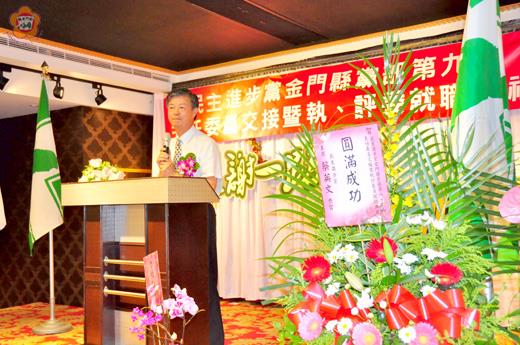 民主進步黨金門縣黨部第九屆主委交接暨執、評委就職典禮昨日在尼伯特颱風天舉行,燃起「風雨生信心」的士氣。在典禮中,新任主委吳增允從卸任主委陳滄江手中接過印信,順利完成交接儀式;吳增允期望能透過民進黨執政優勢,藉由黨務系統來為金門爭取更多建設與福祉,為金門來努力,讓更多金門鄉親了解民進黨,也希望鄉親不分藍綠,一起為金門發展集思廣益,共同努力,讓金門越來越好! 這項交接和就職典禮於昨天上午十時三十分隆重舉行,卸任民進黨金門縣黨部主委陳滄江當場捐贈二百萬元、前民進黨金門縣黨部主委翁明志也宣佈捐出十萬元,將作為尋覓黨部「永遠的家」基金。縣府秘書長林德恭、社會處長甯國平、行政處長鄭東來、金門日報社長吳世榮,以及金寧鄉長陳成勇、金湖鎮長蔡西湖等各界貴賓到場觀禮和祝賀。 在完成印信交接後,新任主委吳增允說他是於2000年的一次因緣際會加入民進黨,也是個人生涯中一段美麗的意外,至今前後有十七個年頭,應該不算短。這段期間,吳增允跟著黨內先進同志一起學習、成長,並感謝一路走來的支持、協助的親友與黨員同志,因而強化了讓他承接這項任務的勇氣。 吳增允表示,在一向被視為藍天的金門,想要開闢綠地,其困難的程度可想而知;民進黨金門縣黨部歷經主委與黨員前輩的努力,從無到有,一步一腳印,逐漸紮根成長,黨籍候選人在金門得票率,不論是總統、立委,每次的選舉都有大幅成長,尤以二○一六總統大選,民進黨主席現任總統蔡英文在金門得到六千六百二十六票,再次刷新歷屆的得票記錄。 民進黨已在中央執政,吳增允說他有幸出任民進黨金門縣黨部主委,將緊隨先進同志腳步,持續打拚,秉持清廉,謙卑與勤勉,紮根鄉土的政治理念,協助民進黨在金門永續發展,並把鄉親的小事當做我們的大事來處理。 此外,在民進黨金門縣黨部原新任主委交接既執評委就職典禮中,縣府秘書長林德恭、社會處長甯國平、金寧鄉長陳成勇等貴賓應邀上台致詞外,新任主委吳增允頒發新任黨職人員當選證書、首席顧問、顧問和感謝狀後,有一項終身黨員簽署活動,並合影紀念及餐會聯誼,劃下圓滿句點。