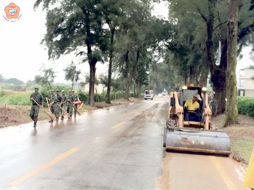 颱風「尼伯特」過境金門地區,部份路段出現豪雨,造成路樹傾倒、斷枝及低窪區積水等災情,金防部所屬部隊於昨日派遣二百二十名兵力及各型車輛十一輛並與金門縣環保局齊心協力,在金湖、金城及金沙等地區幫助民眾清整家園。 雖然此次尼伯特颱風沒有傳出相關重大災情,但仍可見路樹倒塌,市容一片狼藉,甚至影響交通安全,各鄉鎮清潔隊努力清除垃圾外,金防部昨日也特別動員二百多名兵力前往各鄉鎮,清理淤塞的水溝與路倒樹枝,協助恢復各地的市容。 金防部指揮官郝以知表示,這次颱風過境幸好沒有帶來重大災情,但金門地區路樹落葉眾多,清潔隊雖然全員出動,但仍力有未逮,因此特別出勤相關兵力協助清理。郝以知指出,軍方非常樂意協助民間各單位進行颱風善後的工作,希望軍民合作能讓所有的市容、交通盡快恢復正常。 金防部也強調,軍民一家一直以來就是金門島的傳統,所轄相關單位除到場關心復原進度並慰勉官兵辛勞外,也將盡力配合縣府的需求,主動協助環境整理,期儘快恢復道路景觀及美麗市容。
