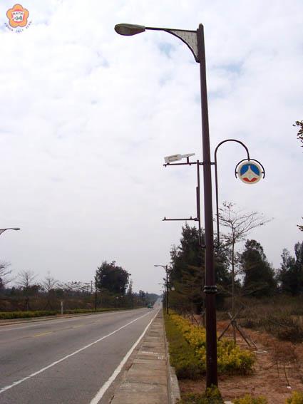 中央公路上的路燈改頭換面,添上新妝。深咖啡色鐵柱,右邊是金門圖騰,左邊則是象徵金門金雞母的高粱酒瓶。有人覺得漂亮,有人嫌它繁複,鄉親以為呢?
