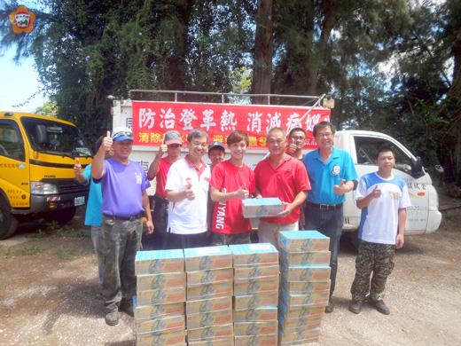 夏季來臨,金城鎮公所為了預防病媒蚊孳生,昨(四)日起正式展開巡迴轄區各里,進行今(一○五)年度的「第二波消毒期程」,鎮公所環保課預定在兩個禮拜內,巡迴各里辦理噴灑消毒藥劑。而新敬業機車行的楊肅謙、楊駿瑋父子昨日特別致送運動飲料三十箱,慰勉清潔隊員炎夏工作的辛苦,另金城鎮長石兆瑉也代表全體隊員表達由衷的感謝。 為阻斷蚊蟲孳生源及傳染途徑,金城鎮公所進行一○五年度的「第二波各里環境消毒」工作,希望能夠從多方面來杜絕消弭病媒蚊的滋生源,以提高民眾居家環境品質外,使民眾免於受病媒蚊傳染疾病的危險。 熱心公益的地區企業,新敬業機車行董事長楊肅謙偕同兒子楊駿瑋,昨日特別攜帶三十箱的運動飲料前往金城鎮清潔隊慰勞,向這群為環境盡心力的環保尖兵表達嘉勉之意。 鎮長石兆瑉表示,金城鎮是地區人口數最多的鄉鎮,也是小三通旅客、觀光客經常往來的重要門戶,希望社區及民眾共同參與,將居家附近廢棄的罐子、瓶子、輪胎等,集中後交由清潔隊清除。 金城鎮公所「第二波各里環境消毒」,昨日第一天進行東門里的消毒作業,今(五)日將展開南門里的環境消毒。 明日起依序為:七月六日至七日(星期三、星期四):西門里。七月八日(星期五):北門里。七月十一日至十二日(星期一、星期二):夏墅、向陽、賢聚、官路邊、古區、東社、官裡、吳厝、庵前、山前、藥井等社區。七月十三日(星期三):水頭、後豐港等社區。七月十四日(星期四):金門城、古崗等社區。七月十五日(星期五):排定於珠沙、東沙、歐厝、小西門、泗湖、和平等社區。