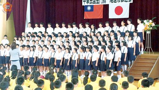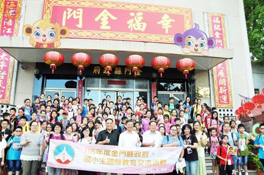 金門縣甄選全縣國小五年級二百名學生,七月四日啟程赴日本與廣島縣尾道市小學交流,昨日第二天行程為日方歡迎會,中華民國國旗和日本國旗同時懸掛在歡迎會場,日方高須小學以合唱和祭典歌舞表演歡迎;金門學子也以表演舞蹈和扯鈴獻技,讓兩地小朋友拉近彼此距離。 這項國小學童國際交流教育活動,全程共7天6夜,全團224人(含20位帶隊教師、4位工作人員)七月四日上午在金門縣政府大門口集合,由秘書長林德恭授旗,隨後在教育處長李文良領軍下,先搭機赴台再前往桃園國際機場搭機,前往日本廣島展開交流活動。 交流行程包括日方歡迎會、校園巡禮、2日入班共同學習、尾道市及廣島市巡禮等學習活動。 金門縣政府教育處指出,本縣積極推動國際教育,近年所舉辦之國際文化交流活動不但拓展孩子的國際視野,由高中、國中開始辦理國際教育、走訪美國、英國、新加坡、日本、韓國等國的學習經驗,今年首度向下延伸至國小,甄選200名五年級生前往日本訪問,交流期間將與日本廣島縣尾道市小學交流、入班上課體驗跨文化的學習與溝通,也將走訪認識當地多元而豐富的文化。而透過此次的交流活動,也期待能強化學生的國際意識與素養,並在帶領學生體驗在地生活的同時,了解全球化所帶來的機會與挑戰。 交流活動在金門縣長陳福海及日本廣島尾道市市長平谷祐宏全力支持下,金門全縣各國小200位五年級生,七月四日啟程赴日展開交流活動,這是金門縣的首創之舉,也是尾道市有史以來最大的小學生交流案。