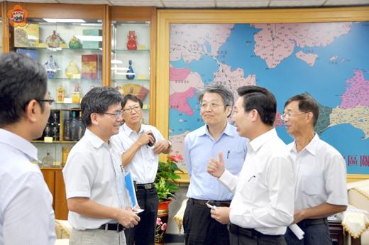 經濟部水利署副署長曹華平昨日率同相關幹部拜會金門縣長陳福海,就大金門海淡廠後續辦理方向案進行溝通協調。對此,縣長陳福海對於「大金門海淡廠功能改善暨擴建工程」表示支持推動立場,並希望以澎湖海淡廠成功範例模式來做。 曹華平昨日上午八時五十分許,率同水利規劃試驗所所長江明郎、簡正程運達、潘禎哲、總工程司陳肇成、科長吳明昆等人,於拜會縣長陳福海時,秘書陳永明、環保局長傅豫東、縣府工務處科長張武達、自來水廠廠長蔡其朝等在場參與。 縣長陳福海對於水利署長期以來幫助金門水資源和水利開發有貢獻,表示肯定和感謝。並語重心長強調,老天爺給金門的每一滴水都很珍貴,能想盡辦法將它留在島上不浪費,也請水利署幫忙金門縣政府做重新檢視。至於金門自大陸引水計畫暨離島地區供水改善計畫,也請水利署多提供專業協助和幫忙。而水對金門很重要,不容受任何污染源的污染。 水利署副署長曹華平強調,「大金門海淡廠功能改善暨擴建工程」一定要推動,並將以專業來協助全力推動。對於陳縣長建設金門籃圖構想和平易近人,曹華平也贊同縣府鼓勵農民開塘蓄水思維,強調水利署會全力來配合。有關金門自大陸引水計畫正積極推動,他也期待明年能完成,讓優質水源進來,搭配金門湖庫水,朝「水優民生無憂」境界前進。 水利署水源經營組指出,金門縣政府所提「金沙溪及前埔溪水資源開發計畫」構想,建議俟相關規劃完成後再研議辦理,該署將積極協助。 水利署水利規劃試驗所指出,大陸引水已於104年7月簽約在案,預計107年進行供水,大陸引水供水後,可有效緩解金門地區供水壓力,依近年水廠年報資料得知,平均供水未達2萬噸/日,大陸引水第一階段即1.5萬噸/日,且逐步增加至3.4萬噸/日,亦即未來供水以地面水(主要是大陸引水)為供水主體,整體水資源運用勢必透過減供湖庫水供給量、水廠停抽地下水及輔導私有水井轉用自來水因應。 水利署水利規劃試驗所指出,金門應優先辦理既有水庫更新改善,如金湖水庫、瓊林水庫、榮湖水庫,使其充分運用,除金湖水庫已由水廠辦理改善外,瓊林、榮湖水庫等二水庫已納入離島二期計畫爭取預算改善。如未來因人口大幅成長造成供水需求,建議可優先藉調整大陸引水規模因應。