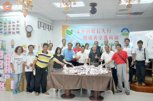 金寧鄉公所辦理105年第二期「金寧回收長久行、勝過黃金萬兩銀」資源回收抽獎活動,由金寧鄉長陳成勇、代表會主席陳成泉與代表和村長等人於八萬多張摸彩券中抽出冰箱、洗衣機、液晶電視等大小獎項共有四百份,鄉長陳成勇提醒幸運得獎的鄉民,不要忘了自即日起至七月卅一日止,憑摸彩券正本及身分證正本、印章逕往鄉公所服務台領取獎品,洽詢電話:電話:320715、325610轉221。 鄉公所清潔隊每三個月辦理一次資源回收抽獎活動,鄉民以具體的行動來響應活動,這一次是105年4月到6月,由清潔隊發放給配合資源回收的民眾彩券,匯集一起,並於昨日上午十時在鄉公所四樓舉行抽獎,由鄉長陳成勇主持,鄉代會主席陳成泉、副主席李開陣、代表辛愛華、翁明惠、林金月、調解委員會主席李國平與公所課長、轄區村長、安岐社區發展協會理事長薛成吉以及多位民眾在場做見證,並應邀抽獎。 陳成勇提醒幸運得獎的鄉民,不要忘了自即日起至七月卅一日止,憑摸彩券正本及身分證正本、印章逕往鄉公所服務台領取獎品,(特獎至八獎獎項須備齊證件方可兌領,普獎可免備身分證,憑摸彩券正本即可兌領)。 清潔隊指出,第二期資源回收抽獎活動中獎號碼:特獎,冰箱一台:064458。頭獎,液晶電視一台:038751。二獎,洗衣機一台:047116。三獎,溫熱開飲機一台:045900。四獎二名,大烤箱各一台:016622、070682。五獎五名,高級電子鍋各一台:065042、058435、062228、058481、030678。六獎五名,電熱水瓶各一台:002603、021675、006086、014350、029174。七獎六名,高級立扇各一台:001397、029559、002805、070394、008946、044636。八獎十名,快煮壺各一台:047199、015338、023352、026387、048071、048072、060664、040678 、062519、 044614。普獎368名:環保宣導品:081、181、311、626、450。彩券末三碼 (每券一份)。
