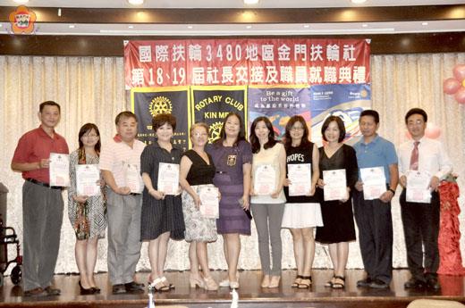 國際扶輪3480地區,金門扶輪社第18屆19屆社長交接及職員就職,廿七日在各界來賓與扶輪社成員的掌聲中完成。眾多來賓到場祝賀,肯定扶輪社對金門地區的關懷與奉獻。會中並捐贈輪椅予金門航空站,完成扶輪社關愛金門的社會服務。 金門扶輪社交接儀式,於本月27日下午六時三十分起在盈春閣餐廳展開,由司儀帶領社員宣讀「四大考驗」,演唱扶輪頌、這是咱的扶輪社、金門社歌「來去金門」等,會中並頒發證書予理事及社職員。新任社長翁世白在前社長陳金墻PP.Rosa監交下,及數十位社友、寶眷、貴賓及親友們的見證下,自前任社長楊紫玫手中接下金門扶輪社印信及議事槌,展開為期一年社長服務任期。 典禮中縣府參議許寬、楊鎮浯立委辦公室金門服務處主任孫國智、金寧鄉長陳成勇、縣府社會處長甯國平、教育處長李文良、縣長室秘書許金象、農工職校校長劉湘金,城中校長許維民等貴賓到場道賀。扶輪社團隊有社員服務委員會主委李月黎、社務行政委員會主委薛承琛、扶輪基金委員會主委洪秀暖、青少年交換學生主委李麗明、扶少團主委張序伯、扶青團主委李松財、公共關係委員會主委孫惠文、青少年交換學生輔導顧問王玉翠、財務會計主委莊玉循、新世代主委顏少棠及社友出席出席見證金門扶輪盛事,肯定扶輪社本著博愛、服務的精神,推己及人貢獻社會,對社會的進步與祥和做出非常大的貢獻。 金門扶輪社於民國八十七年成立,本屆為第十九屆,多年來囊括了地區的眾多菁英參與。長年以來每屆社長與社員無不全力以赴,整合扶輪社的資源,盡心為地區服務,目前於金門各處,無論是在公益、醫療、關懷、救助、教育等等,皆可觀察到扶輪社服務的成果。 廿七日的交接典禮,特別進行一項社會服務,捐贈一批輪椅供金門航空站使用,再次顯現金門扶輪社關懷地方的精神。金門航空站由於近年來使用率大增,一些現有的設備也面臨不敷使用的考驗。特別是便利的航空交通,讓多數行動不便的旅客更於頻繁的搭乘。而金門航空站的輪椅或有損壞、或有遺失,目前急需補充。因此,在金門航空站與金門機場航空公司代表聯席會提出需求下,由金門扶輪社社長楊紫玫提出號召,由全體社員響應的捐贈下,提供一批輪椅供金門航空站使用,作為本次的社會服務。縣府參議許寬代表陳縣長表達祝賀之意,也代表縣府致上崇高敬意,衷心感謝對鄉親提供熱心服務。 翁世白表示,他本人是由基層的勞工做起,在創業的過程中,多年來受到各界的協助,今日如此榮幸擔任金門扶輪社的社長。因此,未來將持續發揮熱情服務社會,並帶領金門扶輪社全體社員為社區做更多服務,同時持續發揮國際扶輪精神,未來在扶輪服務長遠路上,共同攜手為最需要服務的地方及人們努力奉獻,為這塊我們熱愛的土地,做更多的服務與關懷。