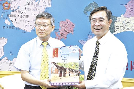 新竹國立清華大學與北京清華大學百年同根,在教學與學術地位同樣享有盛名。國立清華大學校長賀陳弘昨日率同學校多位主管,前進金門踏勘走訪,為學校在金門有個開班授課地方找尋適當地點,以朝開辦EMBA在職專班、金門高中職以下教師有八百到一千人左右,可以辦理進修培訓課程等,尋求金門縣政府能在學習場域和空間整建及經費多加支持。 對此,剛上任不久的金門縣副縣長吳成典昨日下午二時三十分在接待賀陳弘校長等一行時,也聽取了賀陳弘校長延伸高等教育到金門的想法,以及陪同的前金門大學校長李金振補充說明。在場作陪的還有金門縣政府教育處長李文良等人。 吳成典對於國立清華大學有意來金門開辦EMBA在職專班和教師進修培訓課程,代表縣長表達歡迎和認為對金門是好事。並請清華大學先寫計畫書,並多走走、看看,會將清華大學想法向縣長做報告,希望在縣府、金防部、金管處共同幫忙協助下,促成清華大學來金門辦兩岸學術交流活動和開班授課目標。 昨清華大學一行,還有教務長戴念華、學務長謝小芩、總務長呂平江、自強基金會執行長張元杰、EMBA執行長邱宏昌、清大校友會董事長成群傑、校長特助尹秀蓮,以及曾任僑委會副委員長信世昌等人。 賀陳弘表示,新竹的國立清華大學和北京清華大學,以及以清華大學教授人馬的廈門大學(被稱南方清華大學)三清華的連結,都有其歷史源起。而自己有一個想法就是希望把台灣、大陸華僑高等教育結合起來,讓砲火止息、知識火花散發。並做成獨特的海內外華人教育基地,在三到五年內達成短程計畫的可利用空間塑造,一到二年的整建費用到位,及少數行政人員進駐;之後,再進入學位班的中程計畫。 賀陳弘一行,昨天也走訪湖下一營區、湖南高地、古寧頭活動中心等地,以為學校在金門未來有個開班授課地方找尋適當地點預為規劃。