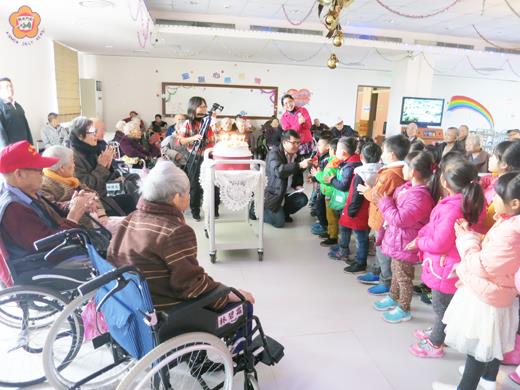 金湖國小幼兒園小朋友近日到松柏園老人照顧中心幫阿公阿嬤們慶生,各班輪流表演節目,並與阿公阿嬤們一同吃蛋糕慶祝,讓松柏園多了一些歡樂活潑的青春氣息。 金湖國小附設幼兒園師生,日前到松柏園老人長期照顧中心,與阿公阿嬤同樂參與慶生活動,此慶生會計畫由松柏園發起和主辦,協調湖幼活潑可愛的幼生們每月輪流至松柏園與長輩們歡渡生日,由大黃班、大綠班、大藍班的學生,分別擔任慶生會表演嘉賓。 慶生會活動由松柏園的工作團隊負責規劃與執行,安排活動流程包括,歡唱生日快樂歌、許願與分享、湖幼幼生節目表演,大黃班由陳婉瑄、洪媛琪老師帶領幼生表演妖怪體操、一個小不點;大綠班由賴怡婷、沈惠卿老師帶領幼生表演找一找、做運動;大藍班由曾桂圓、楊偉彣老師帶領幼生表演烏克麗麗彈奏生日快樂歌、愛你媽媽咪和幫阿公阿嬤按摩,活動最後幼生和阿公阿嬤共享生日蛋糕。 松柏園表示,此活動之目的係因近年來老人養護機構之服務形態日趨多元,除既有的日常生活照顧外,更發展以跨專業之團隊服務模式提供多元服務內容。為持續精進服務品質,金門縣松柏園長期照顧中心推動之此方案結合社區鄰近之幼兒學校,透過慶生會的活動辦理方式,期在祖孫共榮的世代互動上,激盪出生命的熱情和火花,使長者們的機構生活更顯多采多姿。 藉由此活動可以培養幼生覺察自己及與家人間的相互照顧關係、參與節慶活動體會節慶的意義、尊敬長輩喜愛與感謝家人等能力,溫馨感人的畫面就在與阿公阿嬤互相擁抱中畫下句點。