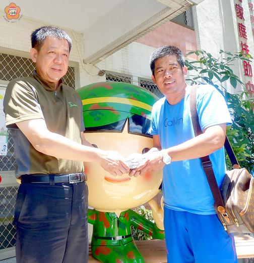 及時行善澤被弱勢孩童。人稱「可樂」的莊育民(見圖右),不僅熱衷及關切地區基層籃球運動,昨日他以父、母之名,捐贈新台幣六十萬元給金門家扶中心,拋磚引玉也將作為幫助弱勢兒童獎助學金和扶幼捐款。 金門家扶中心主任李桂平表示,中心正為助學獎學金憂慮,莊育民的善款讓家扶稍解燃眉之急,也代表有所受助孩童表達由衷的謝意。 金門家扶中心,昨日上午十一時許收到一筆六十萬元捐款,由莊育民先生以其父莊木棍(已故),和慈母陳延芬之名所捐贈。莊育民親自將善款送到家扶中心,由金門家扶中心主任代表接受。而外號「可樂」的莊育民也想藉此舉報答父母養育之恩,他並用行動拋磚引玉,讓更多人來關注弱勢兒童。