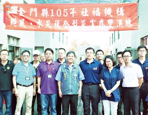 金門縣政府社會處秉持「防災觀念平時有,災害來臨免緊張」之觀念,昨日上午八時起在金門縣私立晨光教養家園辦理「105年度社會福利機構複合型災害防災聯合演練」,另結合金門縣消防局、縣府復康巴士及晨光教養家園工作人員、園生參演,以及邀請縣內社會福利機構(金門縣立大同之家、金門縣立福田家園、金門縣立松柏園長期照顧中心)代表觀摩與課程訓練,本案活動經費由公益彩券盈餘補助。 複合型災害演練是各社福機構每年必須辦理演練之重要工作,另因金門地區常發生之災害類型為颱風、水災,為使機構更能透過演練來檢視災害應變計畫內容之可行性,因此,邀請金門縣消防局指導演練模擬狀況,另於演練結束後,邀請消防局林俊科長講習,課程內容有:地震發生逃生要領、火災預防常識與逃生要領。 縣府社會處長甯國平表示,本次演練使參演機構熟稔災害發生應變流程及編組任務,並透過消防單位指導將正確觀念落實相關處遇,結合可能發生之情境,提升緊急應變能力,期許當災害發生時,社福機構能迅速採取有效因應方式,降低災害所生之損害。