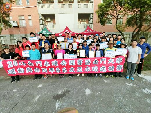 2016金門木球公開賽暨金門大學運動與休閒學系「系友盃」木球邀請賽,邀集金門木球好手相互較技,個人菁英組胡耿禎;團體混合組黃紀瑜、翁文懷、江得億、楊芷娟,表現優異,一桿進洞。金大管理學院院長董燊指出,該項比賽,也是為今年離島運動會木球項目選拔選手做暖身賽。 金門大學運動與休閒學系致力推動木球運動,學生們經常代表地區參加國內外各項木球比賽,屢屢奪得佳績,師生們努力的成果,深獲地方上的肯定。這幾年,木球運動也從金大校園往外推廣出去,成為地區的社團運動,帶動地區木球的運動風氣。 「系友盃」木球邀請賽,聚集該校運動與休閒學系歷屆學長、姐參賽,大家「以球會友」,相互切磋球技,金城國中亦組隊參賽,表現不錯。金大管理學院院長董燊、運動與休閒學系系主任黃仲凌、林本源教授、溫景財教授、人事室主任錢忠直、體育場場長許換生等「坐鎮」指導,讓選手進行公平的競爭。 黃仲凌指出,該項比賽,促進系友間情誼感情,切磋球技,提倡動態休閒活動,也拉近選手們的情誼。此外,也提供2016離島運動會木球項目參賽選手選拔的資格依據。 比賽地點在金門大學榕園,選手認真展現平日所學的球技,有不少一桿進洞,使現場氣氛熱絡。個人組最後以加賽一道分出勝負。一桿進洞分別為:個人菁英組:胡耿禎。團體混合組:黃紀瑜、翁文懷、江得億、楊芷娟,獲頒獎獎勵。
