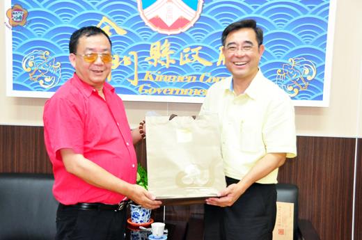 新任金門縣政府副縣長吳成典昨日接見來自北京天津香港書畫家一行十餘人,自金門最適宜自行車騎乘生態旅遊的城市,談到金酒行銷、縣民福利及兩岸文藝交流;吳成典歡迎他們的到訪,並希望多多互相往來,增進金門與北京、天津和香港的文化交流和藝術水準。 北京天津香港書畫家一行,於昨日上午十一時,在金門文化局長呂坤和和書畫家楊誠國等人陪同到縣府拜會。在接見時,吳成典與北京天津香港書畫家握手致意;書畫家現場也高歌一曲,表達來金門交流和參訪歡喜的心情。 另,北京天津香港書畫家一行也參加在文化局展場舉辦的「弘寶天下兩岸書畫聯展」,展出包括金門書畫家在內近八十件書法及水墨畫作品,展出至六月十九日止,增進兩岸藝文交流活動。 在接見時,北京天津香港書畫家表示兩岸書畫交流平台已建立起來,未來會有好的發展和願景,也將促進兩岸和諧發展;他們也稱譽金門書畫發展的水準和蓬勃的氣象。 最後,副縣長吳成典表示兩岸書畫家在金交流意義很大,希望未來兩岸在藝文多交流,並與他們在縣政府大門前合影留念。