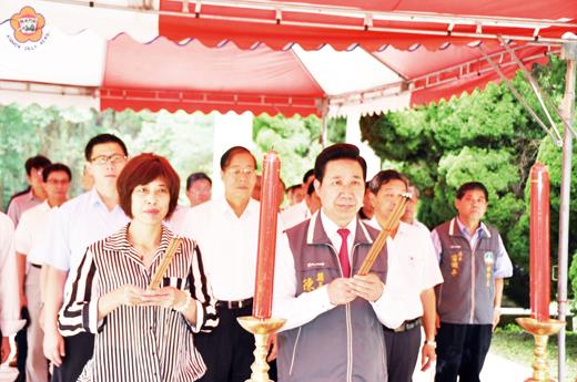 金門各界昨日上午在魯王墓園舉行公祭明監國魯王399週年冥誕祭典儀式,由縣長陳福海、議長洪麗萍共同擔任主祭,依循古禮於魯王靈前上香,並率參與祭典人員行三鞠躬禮,表達對明監國魯王朱以海追思之意,公祭場面隆重且莊嚴肅穆。 金門各界是在昨日上午九時三十分於小徑的魯王墓園舉行明監國魯王399週年冥誕公祭儀式,由金門縣縣長陳福海、金門縣議會議長洪麗萍擔任主祭官,二人並依循古禮依序在魯王靈前上香、獻花、獻爵、獻饌、獻果、獻金帛等禮儀,並率縣府各局處主管、機關主官、鄉鎮長、金管處長謝偉松等人員進行三鞠躬禮,表達各界對魯王的追思。 與鄭成功退居金門的魯王朱以海,因明末清初時勢所趨而有監國之名,所謂「監國」係指國家未有新君任職正位,而由近親代理國事之意,魯王是明朝開國皇帝朱元璋的後代裔孫,曾於大陸東南沿海福建、浙江等地,與鄭成功致力反清復明大業,後輾轉流落至金門,並在明永曆十六年病逝金門,享年四十五歲。 根據現藏國立歷史博物館的「皇明監國魯王壙誌」載,魯王朱以海字巨川,號恆山,別號常石子。該壙誌石材屬於玄武岩,橫額為「皇明監國魯王壙誌」八字,寫成二行,以隸書體刻成。誌文內容主要記述魯王出生、薨逝年月,生平事蹟概要,以及家屬、後代遭遇等,以工整的楷書刻成。 至於目前位於小徑的魯王墓則是在民國四十八年新建,並在五十二年辦理安葬典禮,至今每年農曆5月15日魯王生日,金門縣都會在魯王墓舉辦祭典,追思感懷魯王復國之心、未成之志。