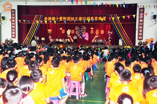 金湖國小及附設幼兒園昨(15)日舉辦畢業典禮,頒發縣長獎、各領域表現最優獎等各項獎項;教育處長李文良誇讚校方辦學認真,金湖鎮代會主席呂瑞泰勉勵畢業生要孝順父母,金湖國小校長陳為信勉勵畢業生「與其改變全世界,不如先改變自己」。 金湖國小昨日舉辦畢業典禮,滿滿畢業生和家長擠爆湖小體育館,熱鬧滾滾。包括縣府參議許寬、教育處長李文良、縣議員李應文、金湖鎮代會主席呂瑞泰、金湖鎮代表陳向鑫、金門體育會理事長李金贊、金湖國小家長會長蔡貽迪、各學校校長等多位貴賓均到場參加。 畢業典禮上穿插各班表演,並頒發各項獎項,包括縣長獎:陳千慈、陳欣妤、楊舒絢、蔡詠芯;各領域平均最優獎:陳千慈、陳咸佑、楊舒絢、許淮瑞;語文表現最優獎:陳佩竹、陳欣妤、陳心苹、蔡詠芯;健康與體育表現最優獎:楊雨柔、謝宜煖、張琇毓、楊可欣;數學表現最優獎:陳季韋、王楷瑋、林婉琇、黃乙恩;社會表現最優獎:王之呈、林義昊、陳致學、洪欣妤;藝術與人文表現最優獎:吳雨桐、吳霈慈、楊承恩、李采庭;自然與生活科技表現最優獎:張祉偉、黃士弦、黃智暘、洪芊雅;綜合活動表現最優獎:胡家榆、呂紫庭、陳芝蕾、陳穎珊。除了學生獎外,另也頒發35個班35位,「為愛點燈親職教育家長獎」,鼓勵家長為愛點燈,陪伴孩子們學習成長。 教育處長李文良致詞時表示,進到湖小發現校內有許多裝置藝術,感覺學校變得不一樣了,這是好的發展,他特別感謝學校校長、老師和家長,對於校方和教育處辦學的支持;李文良也祝福畢業生,未來求學路一切順利。金湖鎮代會主席呂瑞泰則是勉勵畢業生要「永續學習」,並且強調「孝順父母」、「行功立德」和「及時行善」這三件事是人生不能等的,他尤其強調孝順父母的重要性。 金湖國小校長陳為信勉勵畢業生,未來要維持個人身體的鍛鍊和各種知識學習,更要培養細膩敏感的心;陳為信強調,想改變世界很難,要「改變自己」比較容易,與其改變全世界,不如先改變自己;改變自己的某些觀念和作法,以抵禦外來的侵襲。當自己改變後,眼中的世界自然也就跟著改變了。如果你希望看到世界改變,那麼第一個必須改變的就是自己。陳為信勉勵畢業生,心若改變,態度就會改變;態度改變,習慣就改變;習慣改變,人生就會改變。