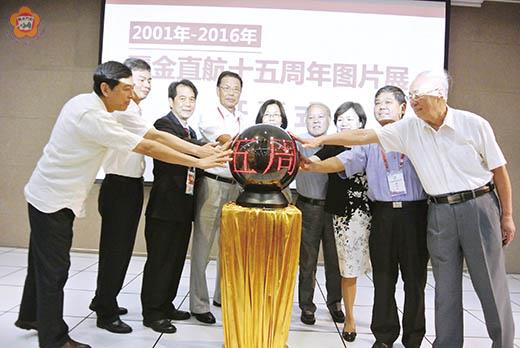 旅台金門同鄉會組團赴廈門參加2016海峽論壇及第8屆兩岸金門同鄉會理事長聯席會,並參與金廈小三通直航15周年圖片展開幕。12日至14日共3天的參訪活動,使兩岸金門同鄉會更緊密的聯誼與交流。 旅台20幾個金門同鄉會理事長等代表共30餘人,由台灣金門同鄉總會總會長李台山率隊,12日上午由金門水頭碼頭搭船赴廈門,參加當天下午於廈門市圖書館舉行的「廈金直航15周年圖片展」開幕式。該圖片展蒐集2001至2016年小三通期間,金廈往來的精彩照片,包括2001年1月2日首航,當時金門縣長陳水在帶領179名鄉親分乘太武、浯江兩艘船直航廈門的歷史照片。 參與開幕式的陳水在說,金廈水域只有六千公尺,兩岸卻相隔52年,真令人辛酸、感慨。開創直航歷史的陳水在公開透露秘辛說,小三通直航經過半年時間緊密籌畫,當年授命他推動直航的陸委會主委就是現在的蔡英文總統。直航前一晚,蔡英文特別趕到金門,與他在浯江飯店闢室秘談,由於事涉政治敏感,禍福難測,蔡英文還特別交代他:「做你該做的事、講你該講的話」。 直航打破兩岸藩籬,陳水在等訪問團在福建受到封閉高速公路以便安全暢行等高度禮遇訪回金門後,當時台北市長馬英九特別電話詢問陳水在大陸當局對我方的態度?陳水在告訴馬英九:大陸就是主張並堅持一個中國。 當時副總統呂秀蓮也專程到金門,要他在料羅港作直航簡報。呂秀蓮還不客氣質疑:你們這樣一面倒,向大陸傾斜,將來我們怎處理兩岸關係?陳水在說他回應呂秀蓮副總統:金門是政治聽台北、經濟靠大陸。 陳水在大爆內幕,也表示將出書紀錄金廈小三通的歷史。 隨後舉行第8屆兩岸金門同鄉會理事長聯席會,以及「廈金直航15周年回顧與展望」文史沙龍座談,由89歲的廈門市文史專家洪卜仁主持,陳水在(兩岸文化觀光經濟交流協會名譽理事長)、金門縣政府社會處長甯國平、教育處科長許能麗、廈門市金胞聯會長陳呈、台灣金門同鄉總會總會長李台山、桃園市金門同鄉會理事長洪成美與談。李台山、洪成美等人肯定小三通為金門帶來便利,也是兩岸交流先鋒,金廈血脈相連本一家,希望兩岸共同努力,致力和平發展。 13、14日,旅台金門同鄉會代表團由廈門市金胞聯常務副會長李淑萍等人陪同,參訪廈門市集美嘉庚紀念館、德化縣瓷器產業、永春縣千年醋文化以及永春白鶴拳的發源地,與永春金門同胞聯誼會熱烈交流互動,為期3天參訪交流圓滿結束。