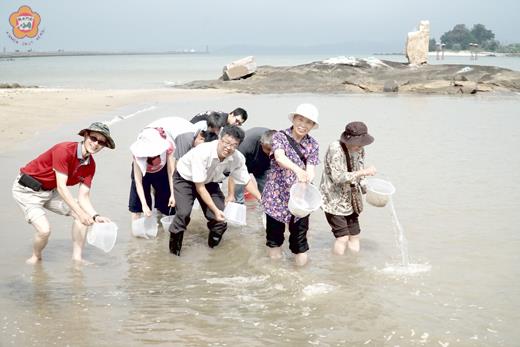 本(六)月八日甫與廈門共同進行復育放流工作,金門縣水產試驗所於十五日上午再度辦理「遠海梭子蟹」蟹苗放流,由水試所放流自行育成之梭子蟹苗,共計四萬尾左右,以協助復育生態,讓地區海洋資源生生不息。 近年來由於過度撈捕,加上民眾在飲食方面不僅求有,更是開始追求精緻美食,也導致沿海的海洋資源逐漸匱乏,金門縣水產試驗所為復育周邊海域漁業資源,因此選定金城鎮的建功嶼海岸進行放流「遠海梭子蟹」。昨日的放流行動,由水產試驗所所長楊文璽帶領所內同仁,並邀請來金考察的澎湖漁業單位貴賓,以及前往建功嶼旅遊的遊客一起參與。 水試所所長楊文璽表示,近幾年該所為了復育金門海域的海洋資源,除了於六月八日與廈門市漁業局進行黑鯛、黃魚的放流,昨日再度準備四萬尾遠海梭子蟹苗進行放流,這個物種是金門沿海相當普遍的蟹類,遊客來金門必點美食「高粱嗆蟹」就是由梭子蟹烹調而成,但是或許是因為濫捕或是天候變遷的影響,也導致梭子蟹的數量逐年在遞減。而昨日放流的四萬尾遠海梭子蟹苗,如果能夠順利成長的話,大約是在四個月之後,就能夠成長到成熟的體型。 遠海梭子蟹是金廈海域常見的蟹種,同時還是民眾眼中的佳餚,水試所人員補充說明,市場對於該蟹的需求量很大,導致近年來野生的族群數量日益減少,為了彌補自然生產力的不足,並能加速恢復海域遠海梭子蟹族群資源,水試所歷經了近一個多月的努力,因今年度氣候的不穩定,雨水多且室溫變化大,克服諸多自然因素,成功育成遠海梭子蟹苗約四萬尾,昨日放流的蟹苗,體長分布約在一至三公分左右,最大的蟹苗約達三公分。 「遠海梭子蟹」又稱沙蟹,具潛沙習性,夜間才會出來覓食,領域性極強很容易殘食。雄蟹的顏色為鮮艷的藍色,體型較大,雌蟹顏色樸素,雄蟹腹甲尖而窄,雌蟹寬而圓。沙蟹的繁殖期為每年的三至十月,交配過後母蟹會將卵抱在腹中,並利用海流及步足清潔腹中的卵粒,最後產出蟹苗。遠海梭子蟹整體為深紫色,頭胸甲後側面具四個乳白色長橢圓形斑,中間兩個斑塊面積較大,有些個體頭胸甲密佈絨毛。左右螯足等大,螯指前端為黑色。 水試所還強調,為充實金廈海域遠海梭子蟹數量,並增加該海域魚種歧異度及豐富度,該所將會持續進行多種魚苗以及蟹苗的培育,放流時所選定的物種,也均為金廈海域中常見物種,以維護金廈海域漁業資源的永續為目標。