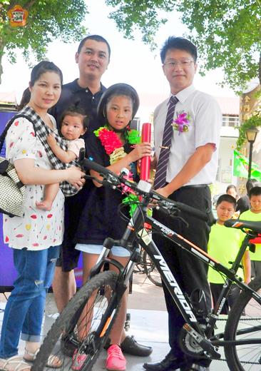 香憶足跡,述美國小十二位國小部畢業生十六日起展開單車環島尋根畢典,昨日上午自青嶼、官澳、西園社區在家長陪同下回到楓香大道,並與七位幼兒園畢業生,一起全校師生、親友夾道歡迎下領過畢業證書,為學六年的學習時光劃下圓滿句點。校長劉界宏勉學子,透過此次單車環島,要更有自信面對未來的挑戰,並且要心存感恩,飲水思源。 述美國小昨日舉辦畢業典禮,此次別開生面在楓香大道上頒發畢業證書,國小部十二位學生完成單車環島挑戰,幼兒園則騎滑板車過楓香大道,象徵效法國小部學長姊的精神完成環島尋根之旅,綠色如蔭的楓香大道,夾道祝福師生的歡樂笑顏,在藍天白雲陪襯下,構成一幅幅美麗的畫面。 昨日結束頒發畢業證書後,移師活動中心舉辦下一階段的畢業典禮,包括教育處副處長陳金文、議員李應文、前議員張光海、歷任校長楊瑞松、陳為學、黃奕展,金沙國小校長李國安、何浦國小校長曾秀玲、安瀾國小校長張志猛、多年國小校長陳來添、正義國小校長陳順德、官嶼里里長楊恭勤、官澳社區發展協會理事長楊世宏等,以及全校師生一起參與。 各班學子粉墨登場載歌載舞,幼兒園中大班,配合痴情玫瑰花這首歌曲將平常課後留園所學的打鼓技能發揮的淋漓盡致。幼兒園小班變身可愛貓女為大來帶來可愛性感舞蹈,三年級師生以大提琴、吉他、爵士鼓、口風琴伴奏一起唱出改編自電影《我的少女時代》的主題曲小幸運的《小燒餅》,同時還有逗趣的戲劇演出,也相當精彩。四年級的花式扯鈴,六年級what is rock 帶動叫,以及秘密籌劃的感性橋段,學子自製影片並獻唱《暖暖》給導師楊彥暉,以及已退伍的兩位替代蔡秉璋、宋浡聖特別請假返金參與,除了祝福還有彼此的約定,也讓整個畢業典禮更加溫馨感人。
