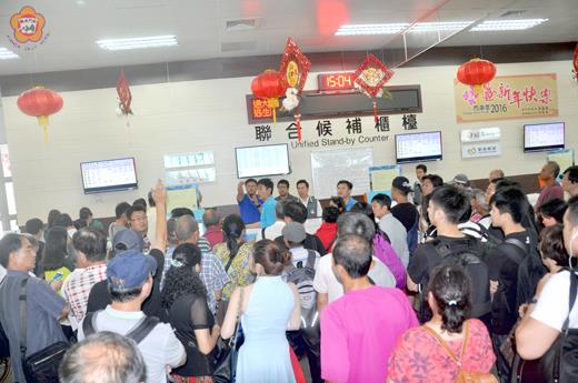 端午節連假雖已結束,金門尚義機場四家航空公司往台北班機班班客滿,仍有二百多名旅客等待候補,縣長陳福海昨日下午在金門航空站主任洪念慈、觀光處主管陪同下前往關心了解輸運情形,並協調遠東航空增開21時10分金門往台北加班機輸運旅客,讓所有旅客都「有機可乘」順利返回工作崗位。 一連四天端午節連續假期前天結束,尚義機場一連二天湧進大批準備返鄉的遊客和收假返回工作崗位的人潮,台金空中運輸出現收假尖峰,一波波旅客攜家帶眷,帶著大、小包行李到機場候機,也有訂不到理想班次的民眾前往候補,而各航班旅客報到率高候補不易,使得機場大廳出現候補人潮。 縣長陳福海非常關心機場旅客輸運情形,昨日下午在金門航空站主任洪念慈、觀光處處長李增財、副處長呂清福陪同下前往了解輸運情形,聽取旅客的需求,隨即協調民航局申請增開遠東航空21時10分金門往台北加班機一班,加班機並於15時依序唱號候補,15時20分唱完登記候補上一百多名旅客,候補至17時仍尚餘空位,讓所有旅客都「有機可乘」順利返回工作崗位。 金門航空站表示,昨天台金航線各航空公司表定往返47班次台金線航班,在天公作美下都能順利成行,四家航空公司飛往台北各航班幾乎班班滿載,縣長陳福海前往關心了解輸運情形,於下午近三時協調增開遠東航空21時10分金門飛往台北臨時加班機輸運旅客,讓所有旅客順利回到台灣。