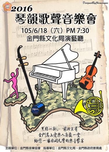 金門縣音樂協會2016年第二場音樂會「琴韻歌聲」,訂於十八日晚間假文化局舉辦,這場音樂會匯集地區校內、外音樂教師及藝術工作者,透過不同的組合,中西樂器、鋼琴與舞蹈以及許瑞芬老師的獨唱演出,一個半小時時間,島上愛樂人齊聚一堂,將帶給你一場不同凡響的音樂饗宴,歡迎喜歡音樂的你到場欣賞。 「琴韻歌聲」由金門縣音樂協會主辦,金門縣文化局、金門縣教育處指導,由總幹事李卓恩負責籌劃,理事長許瑞芬廣邀地區音樂同好一起玩音樂,活動將於十八日晚間七時三十分假文化局演藝廳演出,除了精彩的琴技、舞藝外,也規劃串場音樂小故事,將帶大家認識老師們以及藝術工作者,他(她)們的學樂歷程的酸甜苦辣! 李卓恩老師表示,音樂會將由不同組合,包括,李政叡老師鋼琴獨奏VS浯江舞蹈團舞碼的結合,豎笛演奏家張國威與學生演出豎笛重奏,以及王敦玲、王維剛古箏與二胡的對話,以及多位老師學生的銅管五重奏、鋼琴八手聯彈,和在地人熟悉的好聲音,許瑞芬理事長的女高音聲樂演唱,前所未有的內容,歡迎愛樂人到場參與。