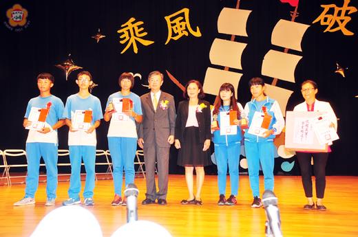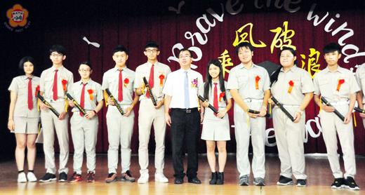 金門高中昨舉辦第62屆畢業典禮,歡送三百多位畢業生,航向偉大航道。校長廖俊仁頒發畢業證書給各班代表,並勉畢業生讓自己成為社會學所稱的「AGENT」,並做到認識自己、了解環境、掌握知識、批判思考四件事,為自己開創精彩的生命及快樂的生涯! 金門高中第62屆畢業典禮昨日上午假白宮舉行,全校師生、家長匯聚一堂歡送三百多位畢業生,副縣長林德恭、教育處副處長陳金文、金門高中家長會會長黃克標、校友會理事長陳水芳、歷任校長蔡錦杉等以及金寧鄉鄉長陳成勇等出席觀禮也向畢業生獻上祝福。 今年應屆畢業生規劃許多活動及拍攝影片昨也一一在畢業典禮中呈現,校長廖俊仁祝福三百多位畢業生走出校門航向偉大的航道,並且能夠開創自己幸福的生活、精彩的生命和快樂的生涯,要達到社會學所謂的AGENT最重要是要做到,認識自己、了解環境、掌握知識、批判思考等四件事。 廖校長也大方在學生設計的表演節目中摻一腳並指出,高中階段是學生多元學習、開發創意的重要階段,今年畢業典禮的流程由同學安排及演出,非常樂於在學生創意的活動中配合協助,這也是教育工作的一環。 昨日畢業典禮除頒獎外也穿插表演節目,包括「上天入地群獸亂舞之飛龍在天」、「東南亞」、「girls change」、「真拿你沒辦法」、「寶寶是小丑但寶寶不說」、「海波浪×杯底不通飼金魚×培光意志│終章」,獲獎名單如後: 社會組:第一名304蔡紫儀、第二名304許德萲、第三名304袁綱宏、第四名304陳姿真、第五名304楊維國。自然組:第一名310李孟龍、第二名310陳偉珩、第三名310許家祥、第四名310洪紹棠、第五名310陳婉昀。體育績優:第一名305辛弘揚、第二名301鄭佳欣、第三名306唐淵。美育績優:第一名310陳婉昀、第二名310許家祥、第三名310陳諭瑩。服務獎:301倪瑞、306許紘華、308趙國翔、310許紋浩、310楊竣淞。德行績優獎:第一名308洪菱、第二名310李彥蓁、第三名310陳婉昀。 學測績優獎:72級分/數學、社會滿級分:310洪紹棠。71級分/數學、社會、自然滿級分/臺大醫學系:310李孟龍。國文滿級分:304黃淑玫、310蔡宇博。英文滿級分:301翁彤、304蔡香、306洪協助、310吳卓伶、310洪琮竣、310陳婉昀、310蔡孟儒。社會滿級分:310石馥瑋、310許紋浩。自然滿級分:310辛易霖、310盛意翔、310莊耀鈞、310陳偉珩、310陳皓威。 全勤獎:301翁彤、303張津華、303歐陽孔惠、304許佳渝、304陳友紳、304陳靖潔、304黃孝蓉、304楊紫函、304蔡紫儀、304蔡曉萱、305林姿彤、305孫愷翔、305翁佳瑜、305陳郁青、306洪靖捷、306黃子柔、306葉美蘭、307莊博軒、308洪菱、308翁竹延、308梁之綸、308許家豪、309江衍松、309吳威嶔、309黃瑄、310王芷菱、310洪儷庭、310莊耀鈞、310許紋浩、310陳皓威、310陳筱蘭、310陳諭萱、310歐陽禹棠、310蔡佳螢。 勤學獎:302黃惠渝、304李昀、304陳穎萱、305陳昱澤、307林鼎翔、308陳柏諭、310陳婉昀。
