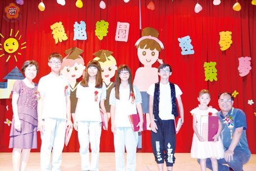 驪歌輕唱,開瑄國小於昨(十四)日舉行該校「一○五級畢業典禮」,在微電影與動人配樂中為儀式揭開序幕。在與會貴賓與家長們的見證下,歡送開瑄國小四十九位畢業生完成學業,邁向下一個階段的人生。校長孫麗琪期勉畢業的孩子們,將「相信」、「勇氣」、「視野」三顆魔豆,種在夢田中,並讓其成長茁壯。 開瑄國小一○五年度畢業典禮,於昨日上午九時起,在金門縣社會福利館內舉行,由校長孫麗琪主持,金門縣政府教育處處長李文良、副處長陳金文、議員蔡水游、陳滄江、李應文、金湖鎮民代表會主席呂瑞泰、代表陳向鑫、金門縣校外會督導張智芳、金湖國小代理校長陳為信、正義國小校長陳順德、柏村國小校長陳為學、多年國小校長陳來添等學區校長、開瑄前校長李錫南、家長會長張莉等貴賓出席,與學生家長們一起祝福學子結束國小、幼兒園階段的學習。 目送孩子們離校,校長孫麗琪以三顆魔豆來勉勵,希望學生能牢記並種在自己的夢田中,並努力去耕耘,去成長。 李文良肯定開瑄國小校長與其團隊的優秀,他表示,開瑄是少數會向教育處說「不」的學校,但是敢說不的背後,是有其遠大的理想,因此他對開瑄國小的評價,就是「創新」,肯定這是一所敢於嘗試、勇於提出自己的想法。此外,他也樂見開瑄國小家長的熱情參與,孩子的成長,是學校與家長雙方互相的付出所造就的,他也期許畢業生在未來的日子,繼續創造精彩。 呂瑞泰肯定開瑄的治校,他對於典禮開場的微電影印象深刻,由小學六年級畢業生親自製作,內容充滿未來,充滿學生的理想,也讓他對於開瑄孩子們的未來,相當的期待。 今年度開瑄國小的畢業生共計有四十九位,其中國小部有二十八位、幼兒園則是二十一位。昨日典禮不僅表揚各項領域成績表現優異的畢業學生,同時還頒獎感謝在親職教育方面相當成功的李孟芬、林仙仙、鍾心怡、陳明梨、陳韋辰、鄭素雯、張玲秀等七位家長。