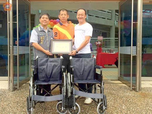 圖文/陳冠霖 金門縣精忠衛隊協會常務理事王國代及常務監事許景烈,昨(14)日共捐贈輪椅40部給金門縣政府,早上送達社會福利館,由社會處長甯國平代表縣府收下,並代表縣長陳福海致贈感謝狀給王國代與許景烈。 社會處長甯國平表示,這40部輪椅將由社會處分送相關機關、單位,提供身障朋友服務,對身障者及長者提供一個友善無障礙的環境有莫大助益,特別感謝王國代與許景烈的愛心。