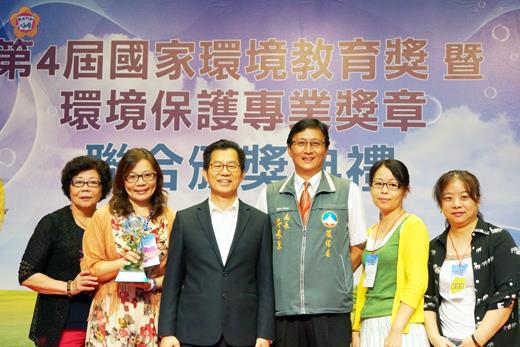 「第4屆國家環境教育獎」昨(6)日在臺北市青少年發展處舉行頒獎典禮,本縣學校組賢庵國小以長年推動環境教育工作的具體優良事蹟,榮獲全國優等獎殊榮。該獎項全國僅有六個學校獲獎,環保署署長李應元頒獎時嘉許每個獎項的得獎單位,並感謝大家的用心努力與行動力,創造不可能的任務,我們才有今日美好的生活環境。 「教育乃百年大計」,縣長陳福海多次指示環保局與教育處致力於基層環境教育扎根工作。為了鼓勵全民參與並獎勵有功人士及團體對環境教育的貢獻,環保局每年均會辦理國家環境教育獎地方初選,再推薦最優秀者代表本縣參與全國角逐,此次賢庵國小歷經複賽、決賽擊敗眾多競爭者脫穎而出,誠屬不易,證明校方所推動的環境教育績優事蹟是被全國肯定,殊值得學習與效法。 環保局局長傅豫東表示,賢庵國小以整個金門都是教室為理念,逐年安排單車遊學,並在移動中設計體驗探索課程,引導學生深度認識金門在地民俗風情與環境生態,營造以在地山野、海洋及文化特色,在環境教育理念與實踐中,展現豐富之內涵。 而且賢庵國小在校門口保留一塊農田,請老農教導種植高粱、小麥,透過種植的歷程,讓學童瞭解該處的土質適合種植的作物,更從中體念了祖先胼手胝足的開墾辛苦,珍惜食物的可貴。而且校方並將這些學習歷程出版「金門高粱小飛俠~賢庵小農四代情」與「麥田裏的趕鳥人」的讀本,圖文並茂,內容豐富,也深深了打動評審委員們的心。 昨日國家環境教育獎頒獎典禮,本縣環保局傅豫東局長及教育處代表陪同賢庵國小代理校長許雪芳及同仁赴台領獎,環保署署長李應元於頒獎給各得獎單位時,特別感謝每個獲獎單位及人員能無私奉獻一己能量,全面推動環境教育工作,並期許每個人能將此份力量向外延伸,共同創造優質的生活環境,讓我們的子孫能代代永續生存。