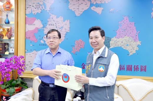 國防部常務次長海軍中將許培山昨拜會縣長陳福海,就陳縣長打造城鄉觀光亮點、在新頭料羅灣畔擘劃軍艦博物館軍事園區交換意見。 陳福海說,金門很特殊,也有很多故事可談,這一年多以來,他勾勒以軍管時期曾來回台金兩地運補艦為主體的軍事園區構想已漸次成形,未來,透過更完整的規劃,他希望從料羅到新頭這條帶狀片區,能打造出金門「諾曼第」、並朝形塑戰爭與和平的價值方向努力。 曾軍旅浯島,對金門有許多珍貴回憶的許培山表示,此回,他算是舊地重遊,再回金門,感覺早已不一樣,無論是新發展,或者新氣象,和從前真的差好多。特別是看到陳縣長對打造觀光亮點的發想,他直誇立意很好,就他的立場,他絕對支持,也願盡個人最大的能量,架起國防部和地方溝通的橋樑,共創雙贏。 會中,陳福海也就碼頭擴建及海指部廢棄營舍活化議題和許培山交換意見,陳福海說,他一直把金門定位為兩岸先行的試驗區,金門也是兩岸和平的潤滑劑,不管兩岸氛圍再怎麼變,最終還是要回到「兩岸人民需要什麼」這個基調,就金門發展觀光來說,有人潮才有錢潮,廈門每年有5千萬旅遊人口,只要做好準備,金門會是廈門延伸旅遊最好的選項,當然這有賴中央和軍方的支持,若能給金門更開放的政策,他有信心讓金門的觀光更上層樓,同時為地方解決更多的民生經濟問題。