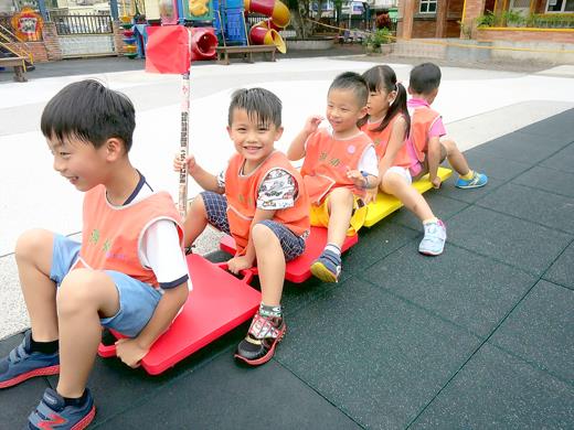 圖文/陳冠霖 端午節將至,金湖國小附設幼兒園特別於端午節前夕,舉辦「陸上龍舟競賽」,讓4個班共100多個孩童一起玩耍,從遊戲中學習彼此相互交流,學習與他人合作,並瘋狂一下。且正值夏季炎熱,校方也安排清涼的潑水遊戲,讓孩子們在炎熱的夏天可以盡情地玩,消消暑氣,小朋友們玩水玩得不亦樂乎,全身溼答答也笑得好開心。